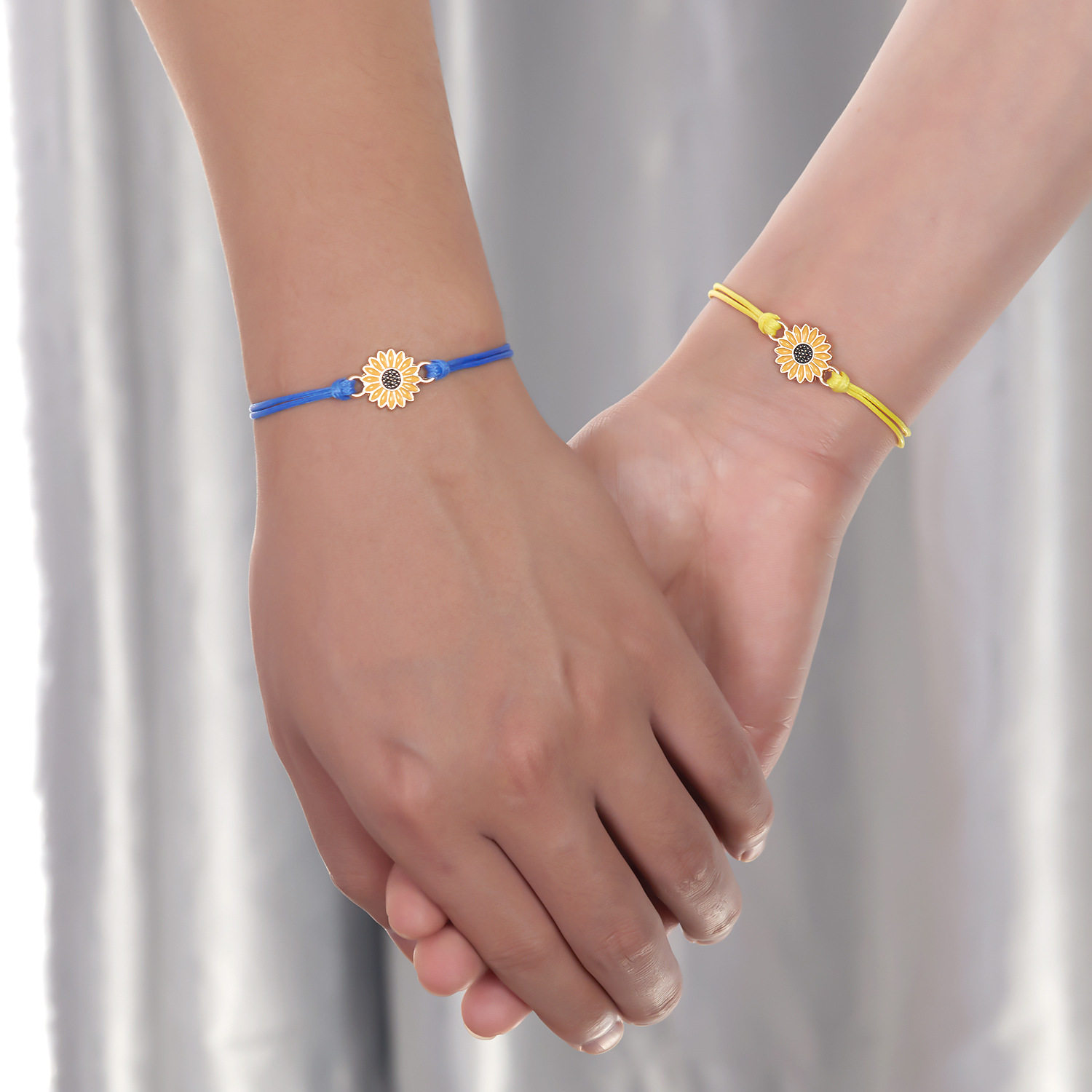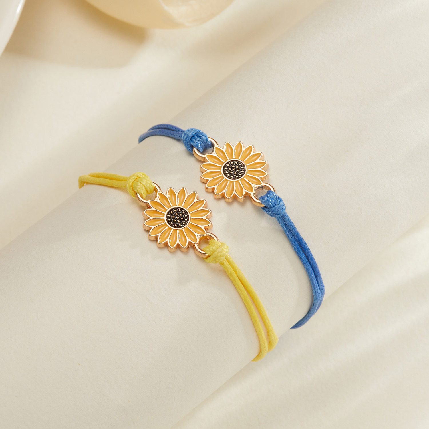 跨境热销 黄蓝乌克兰手链 雏菊太阳花两条装手工编织情侣闺蜜