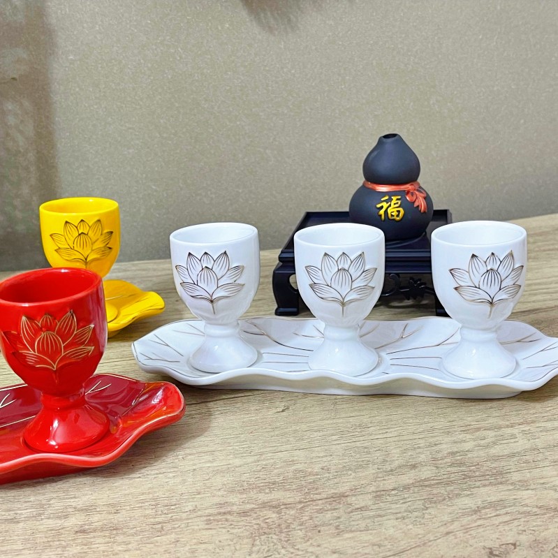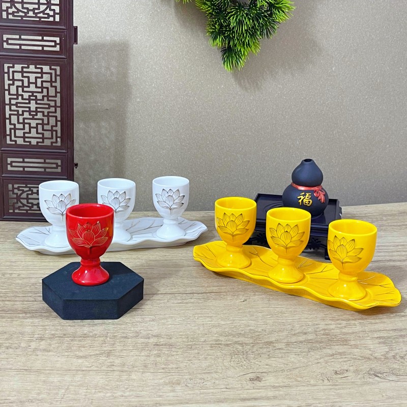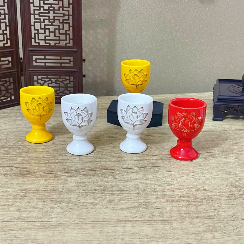 酒杯拜神杯供水杯子莲花酒杯上供家用财神佛前陶瓷浮雕莲花杯摆件