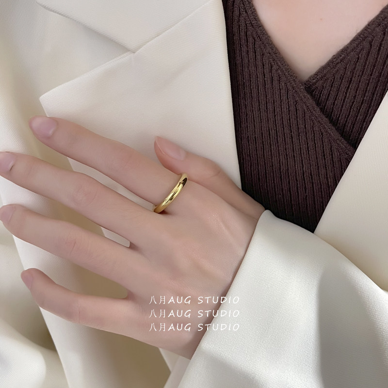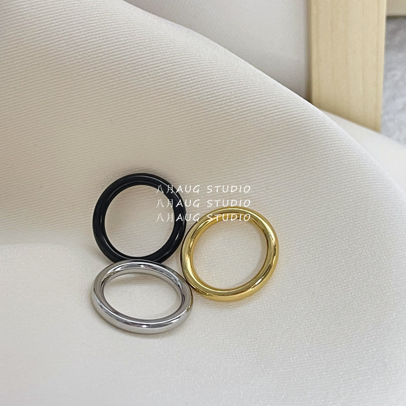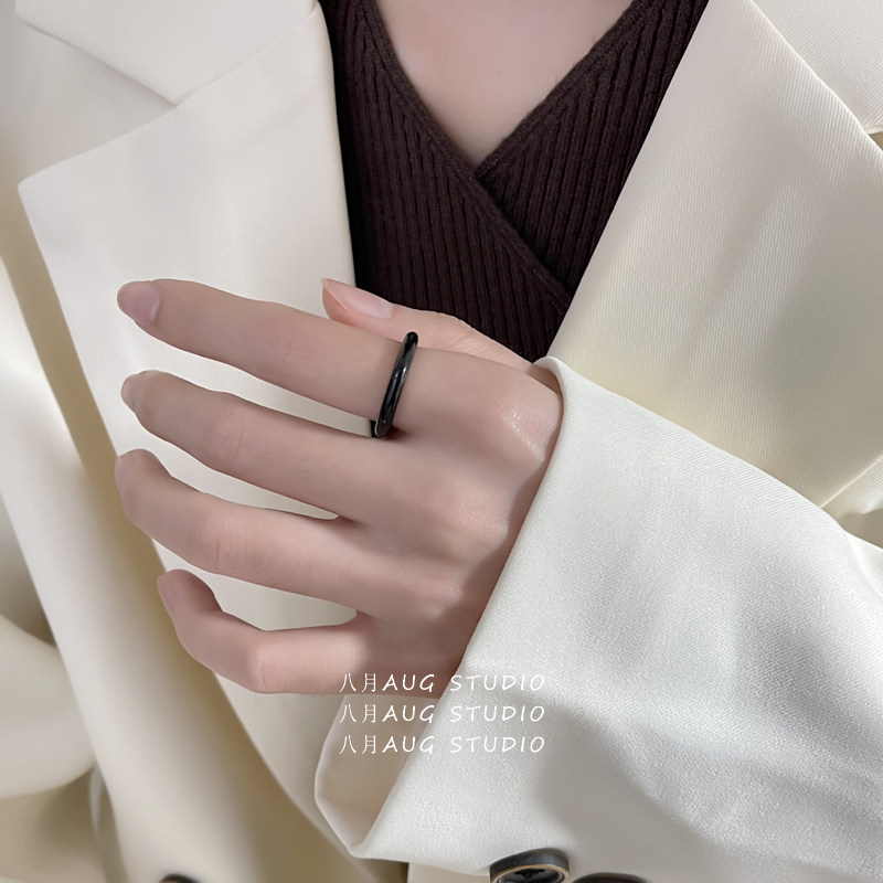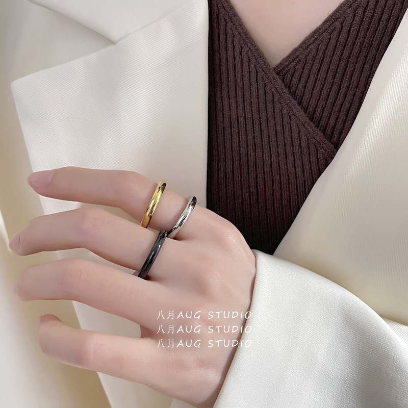 八月AUG简约素圈小众设计情侣男钛钢戒指女百搭黑色ins风不易掉色