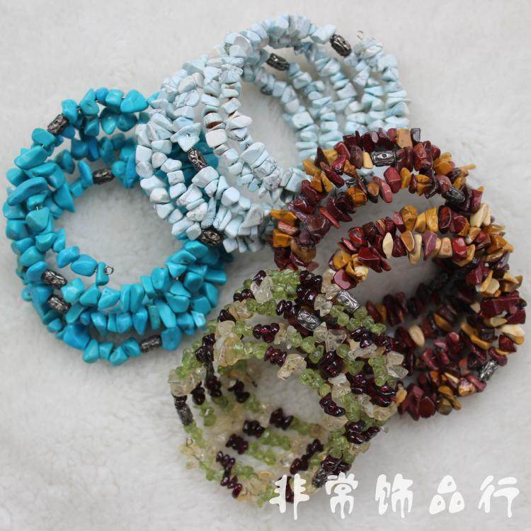 天然水晶石碎石串手链多圈 橄榄石蛋黄石松石手串 手工制品 特卖