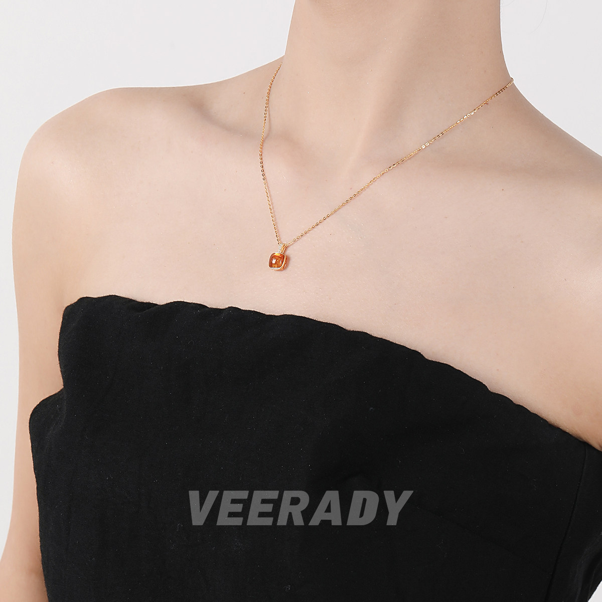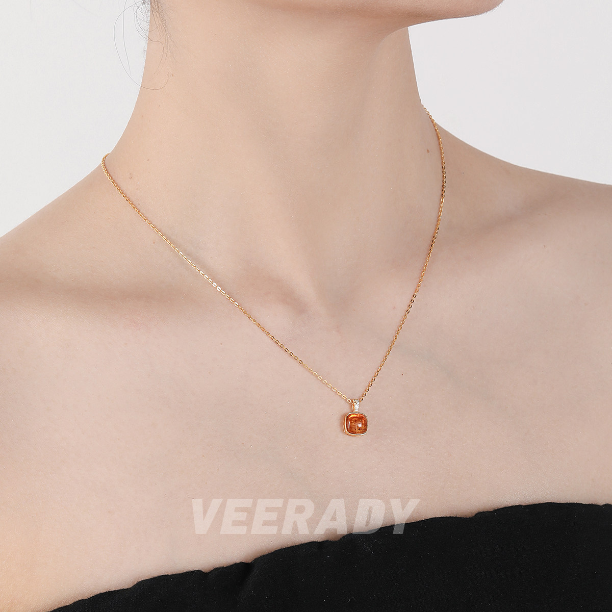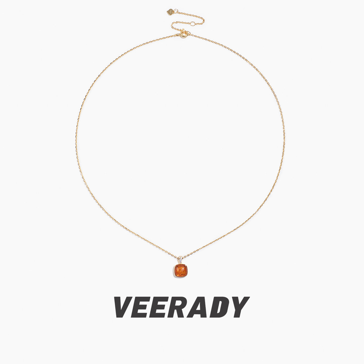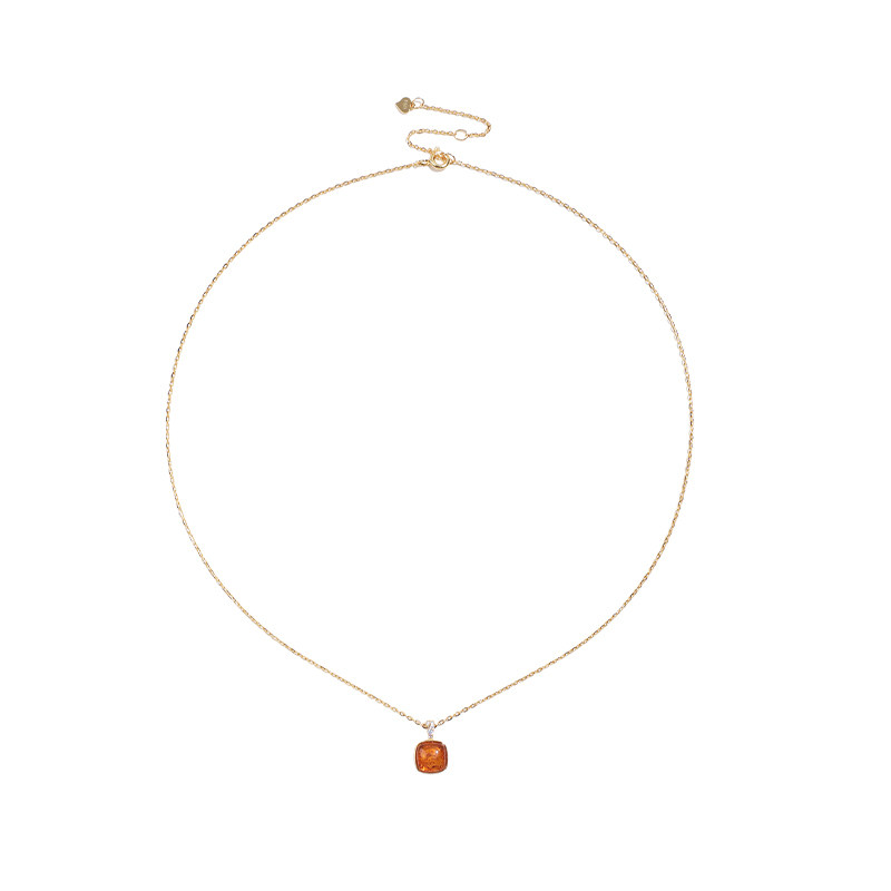 薇拉蒂S925纯银琥珀方糖吊坠女款轻奢花珀锁骨链新款简约复古项链