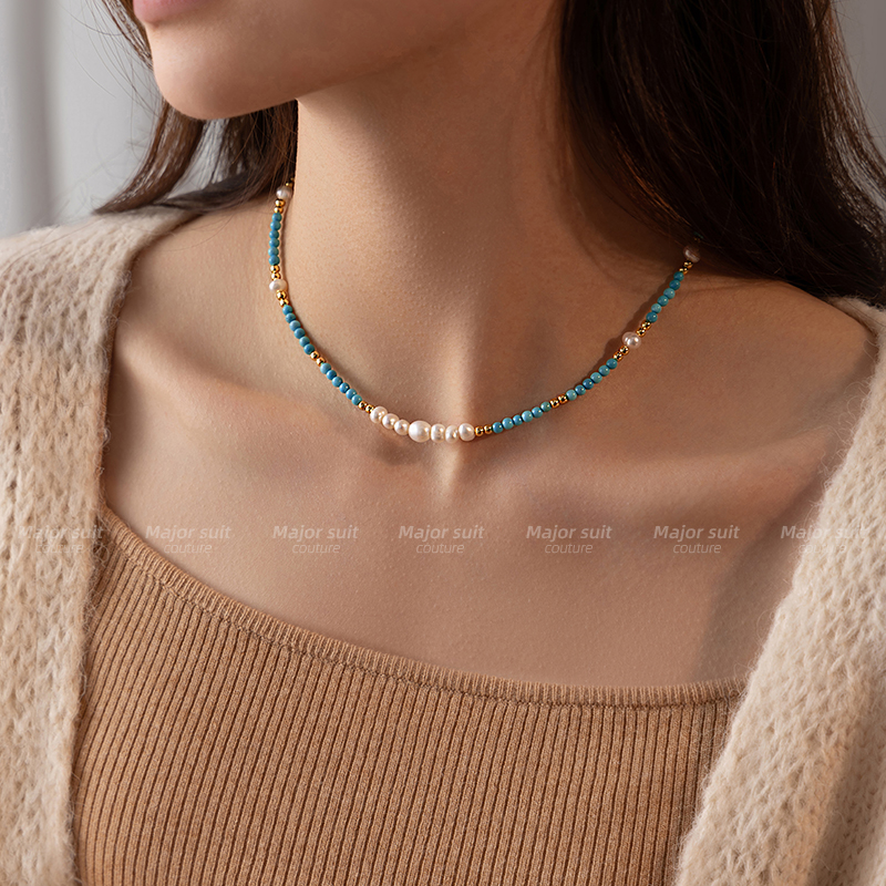 蓝色串珠项链颈链锁骨链高级感轻奢小众配饰2025新款爆款精致百搭