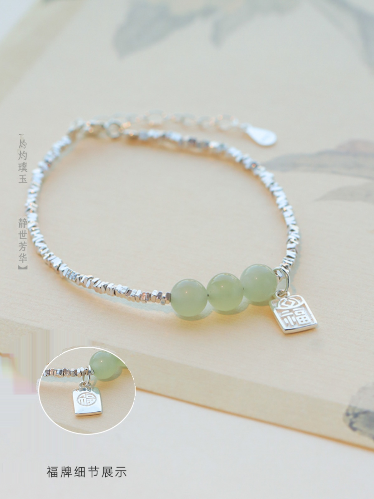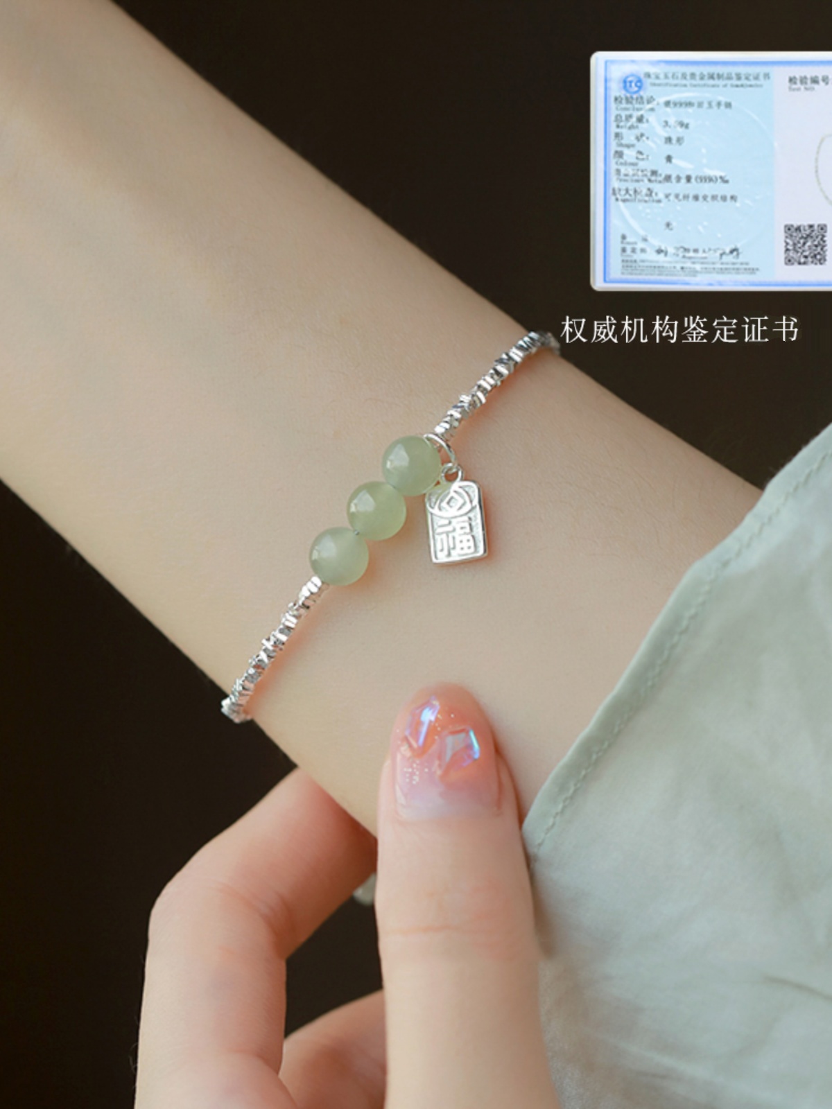 碎银子999纯银手链女2024年新款和田玉轻奢小众高级感情人节礼物