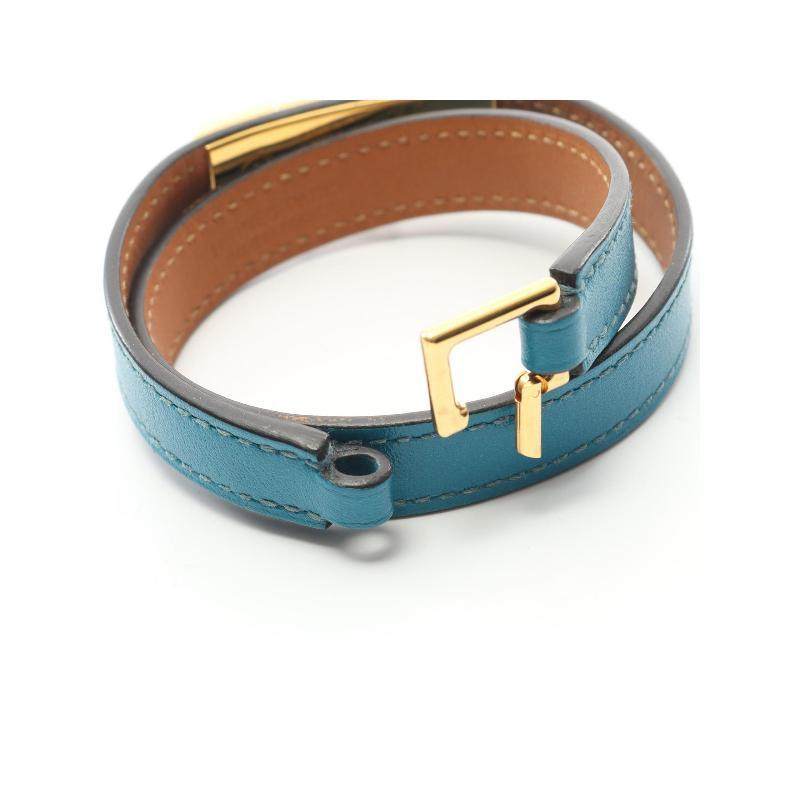 中古Hermes爱马仕女B级9新bracelet手镯/手链牛皮手链蓝色