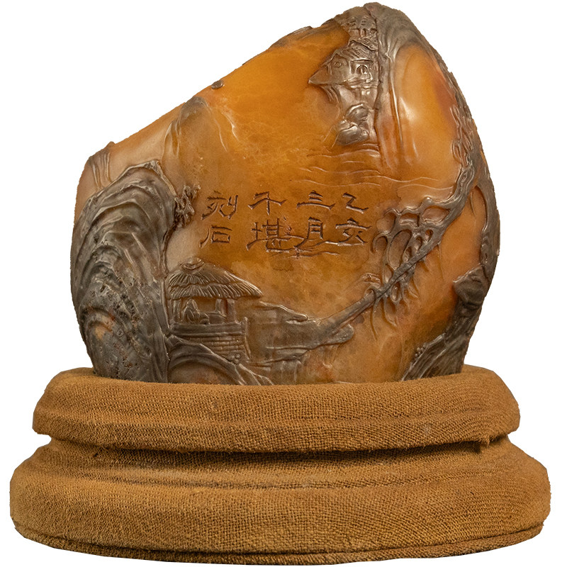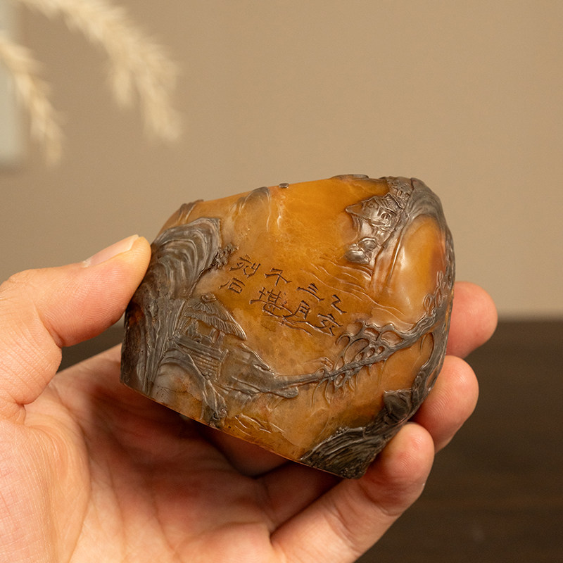 清代田黄石雕山水人物诗文印章老物件文玩古董收藏田黄石印章摆件