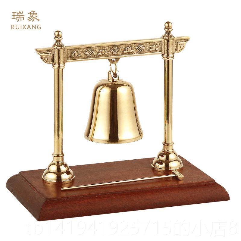 正品瑞象 黄木红底座敲钟摆件酒吧摆家件铜铜钟平安居办公室风水