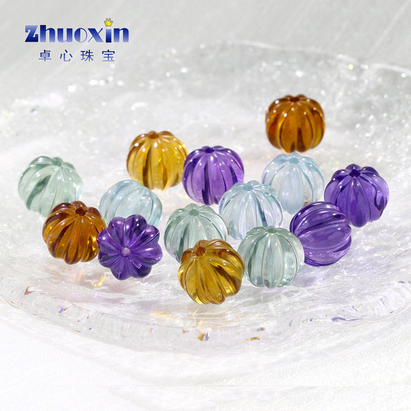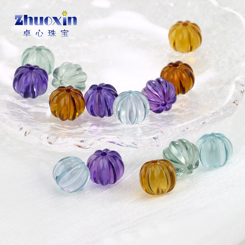 南瓜珠培育压电水晶组合 串珠全孔手串配件珠合成紫蓝黄绿色裸石