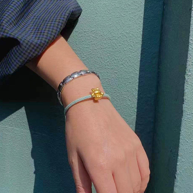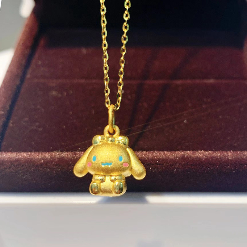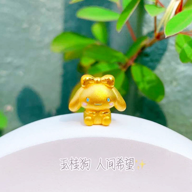玉桂小狗黄金吊坠3D硬足金999生肖大耳狗纯金编绳手链女士可刻字