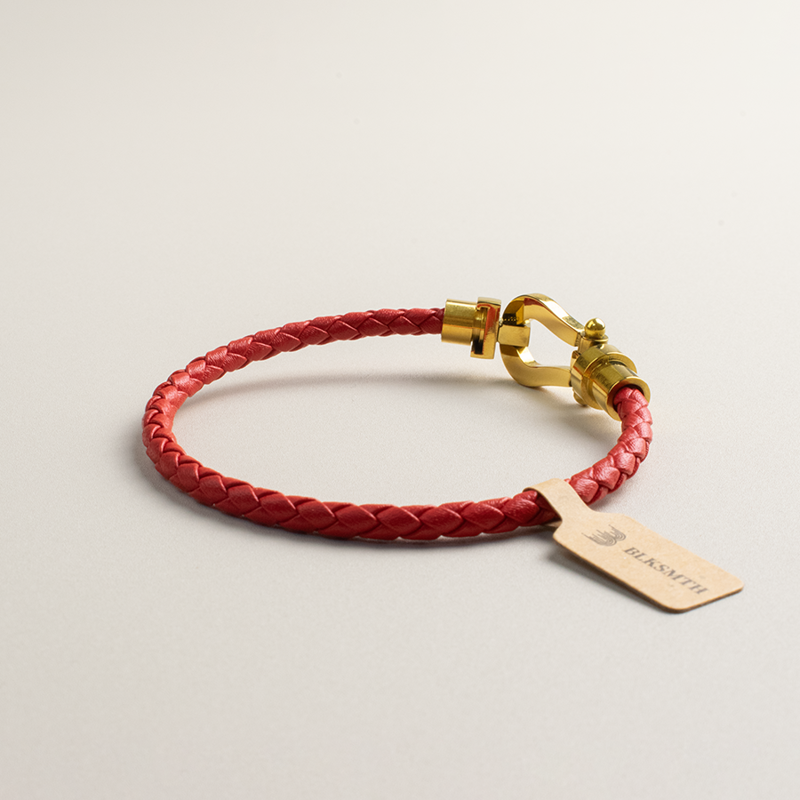 莎莎平替款爆款镀金真皮编织马蹄扣手镯手链女士手链牛皮