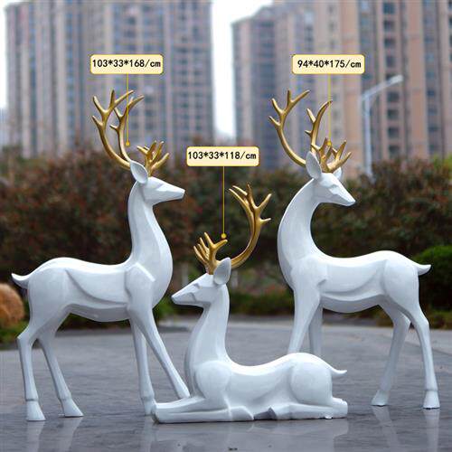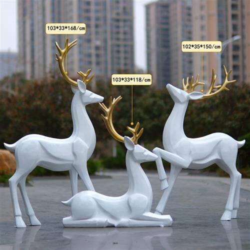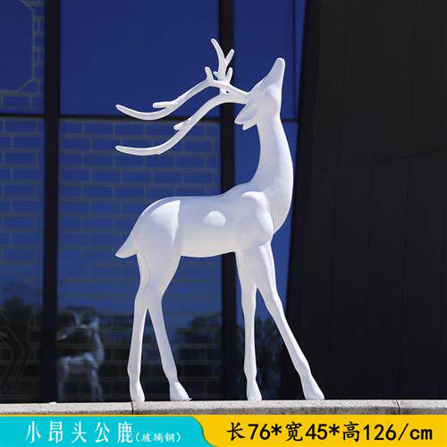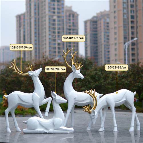 简约现代白色梅花鹿玻璃钢雕塑户外公园林景观房地产小区装饰摆件