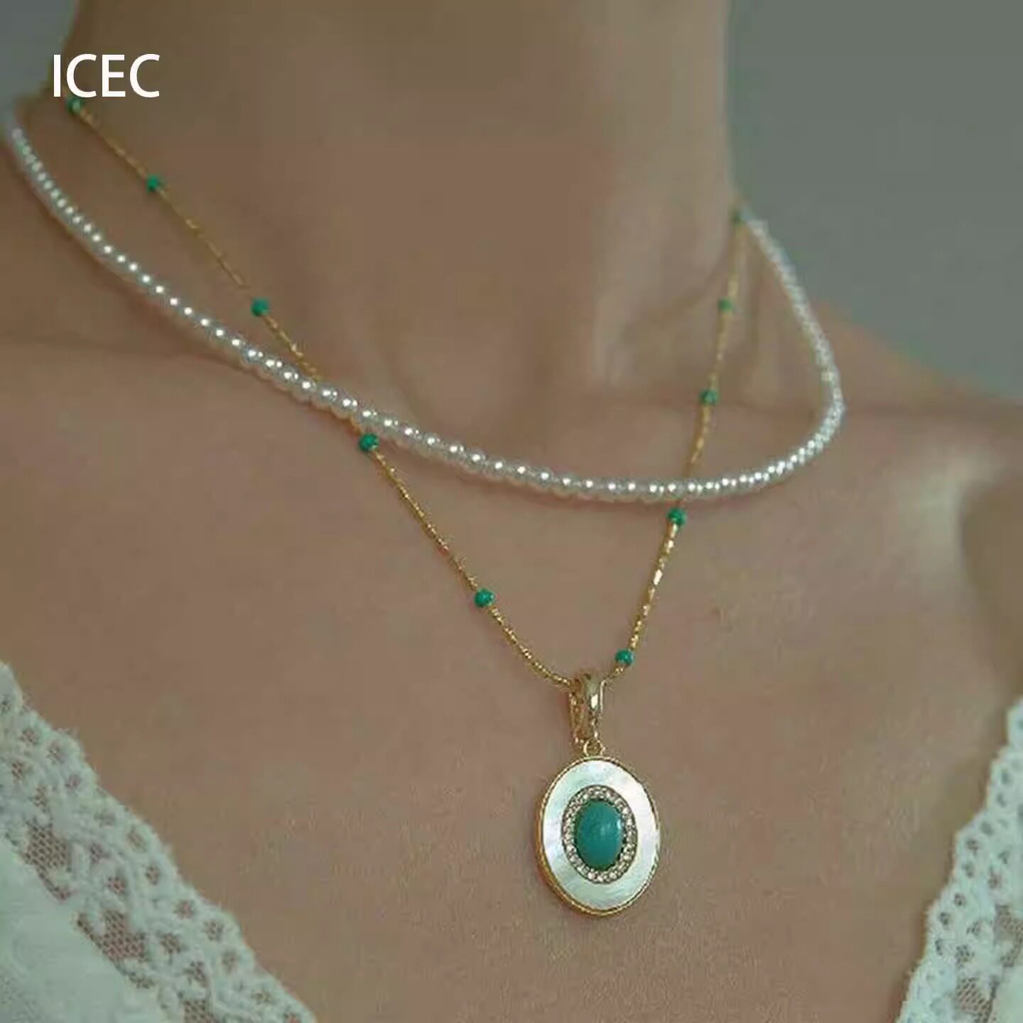 S925纯银绿色贝壳项链女款2025新款高级感轻奢小众精致配饰锁骨链