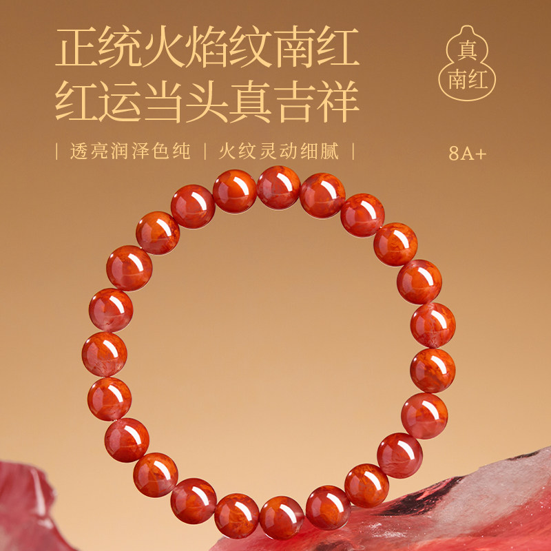 天然火焰纹南红手串女士真品赤焰红玛瑙手链男女玛瑙水晶红色圆珠