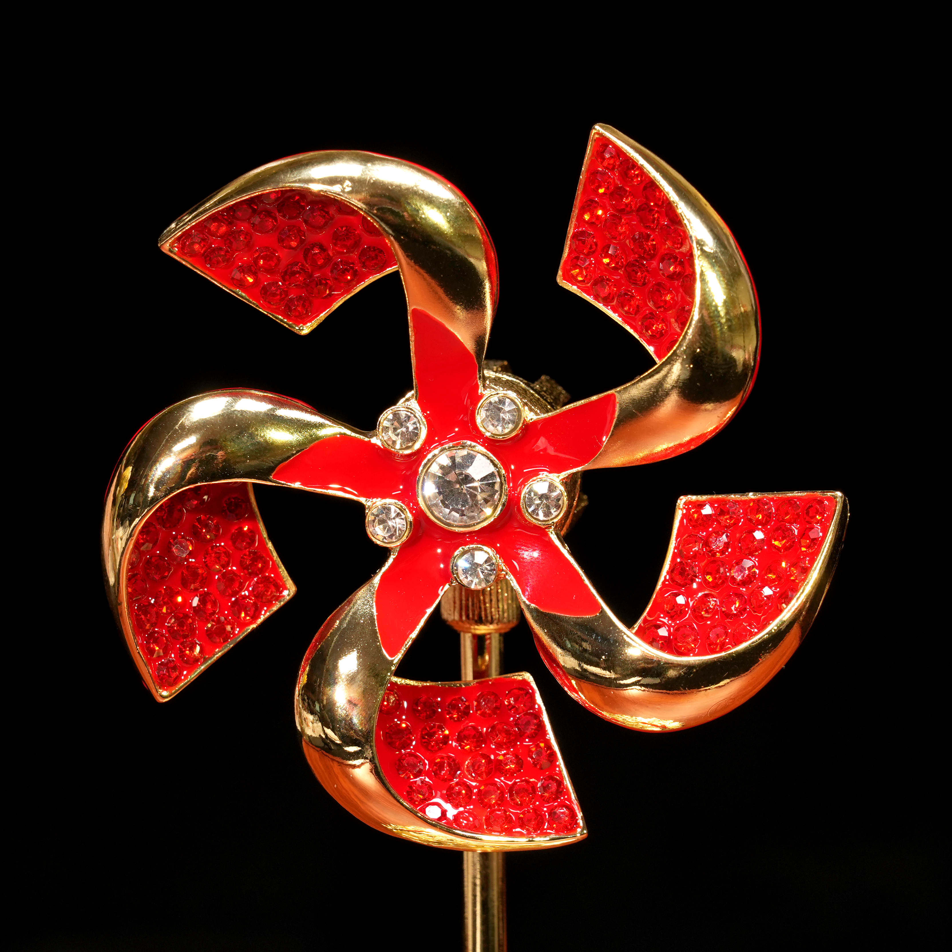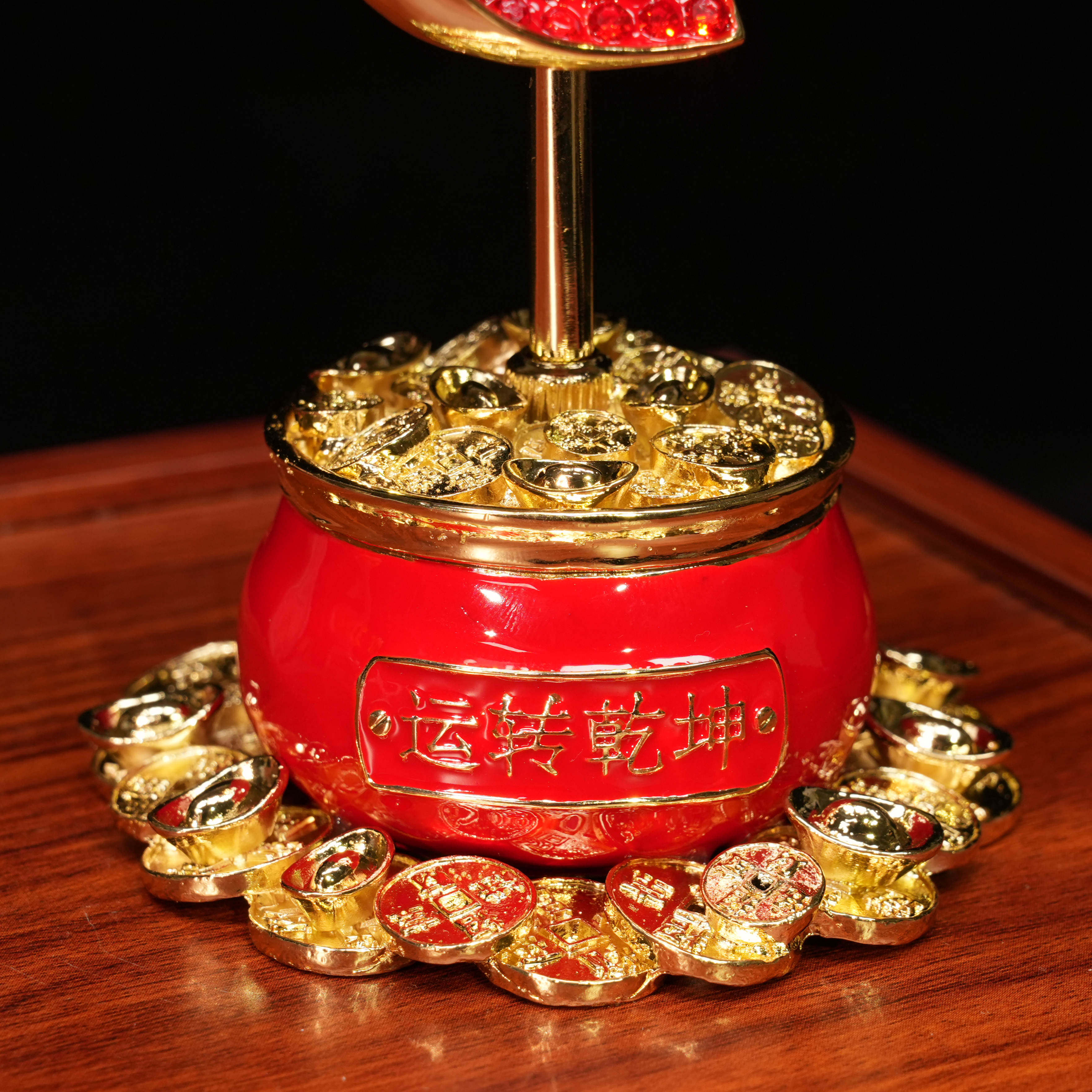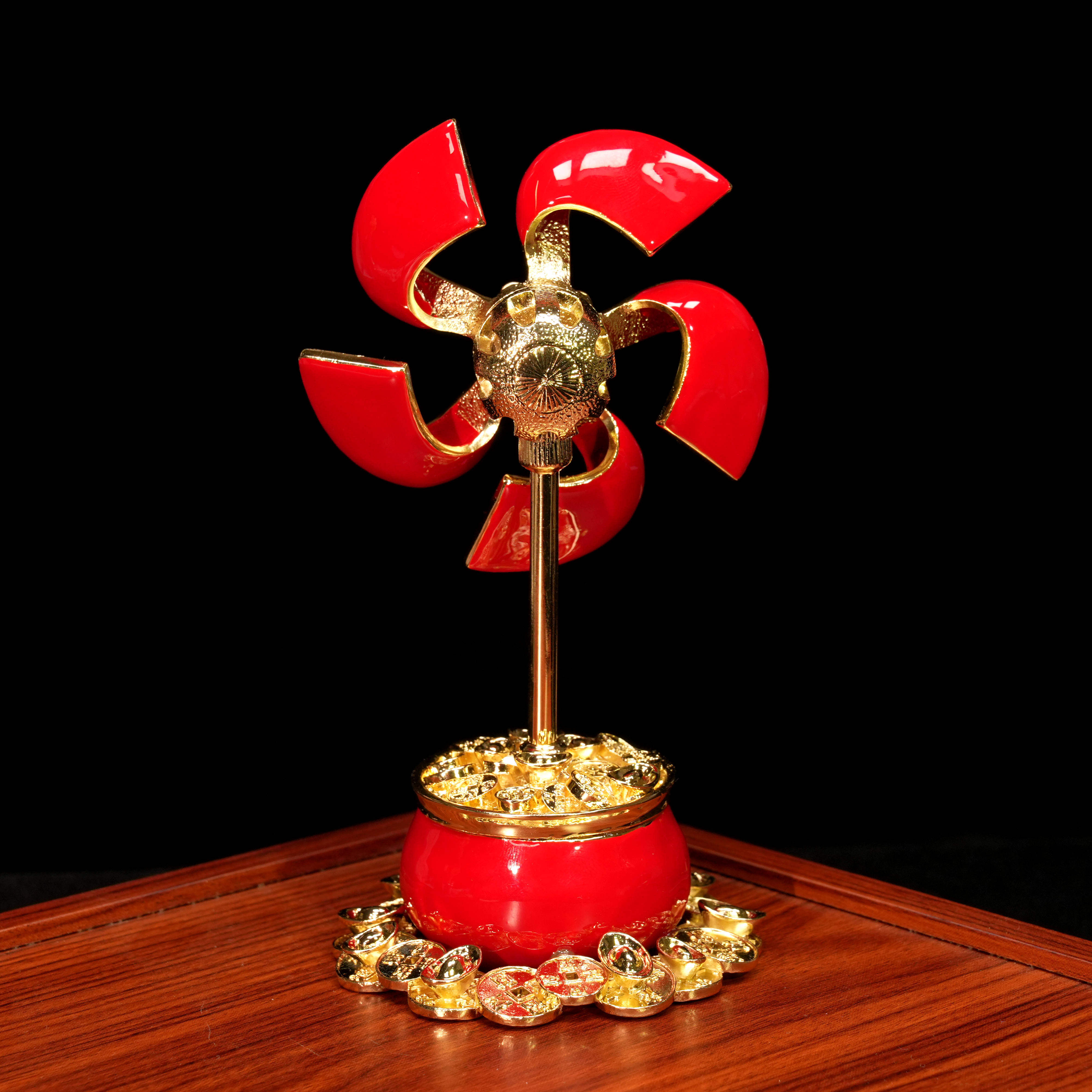 中式风水车轮“运转乾坤”装饰摆件红色金属旋转家居客厅摆件送礼