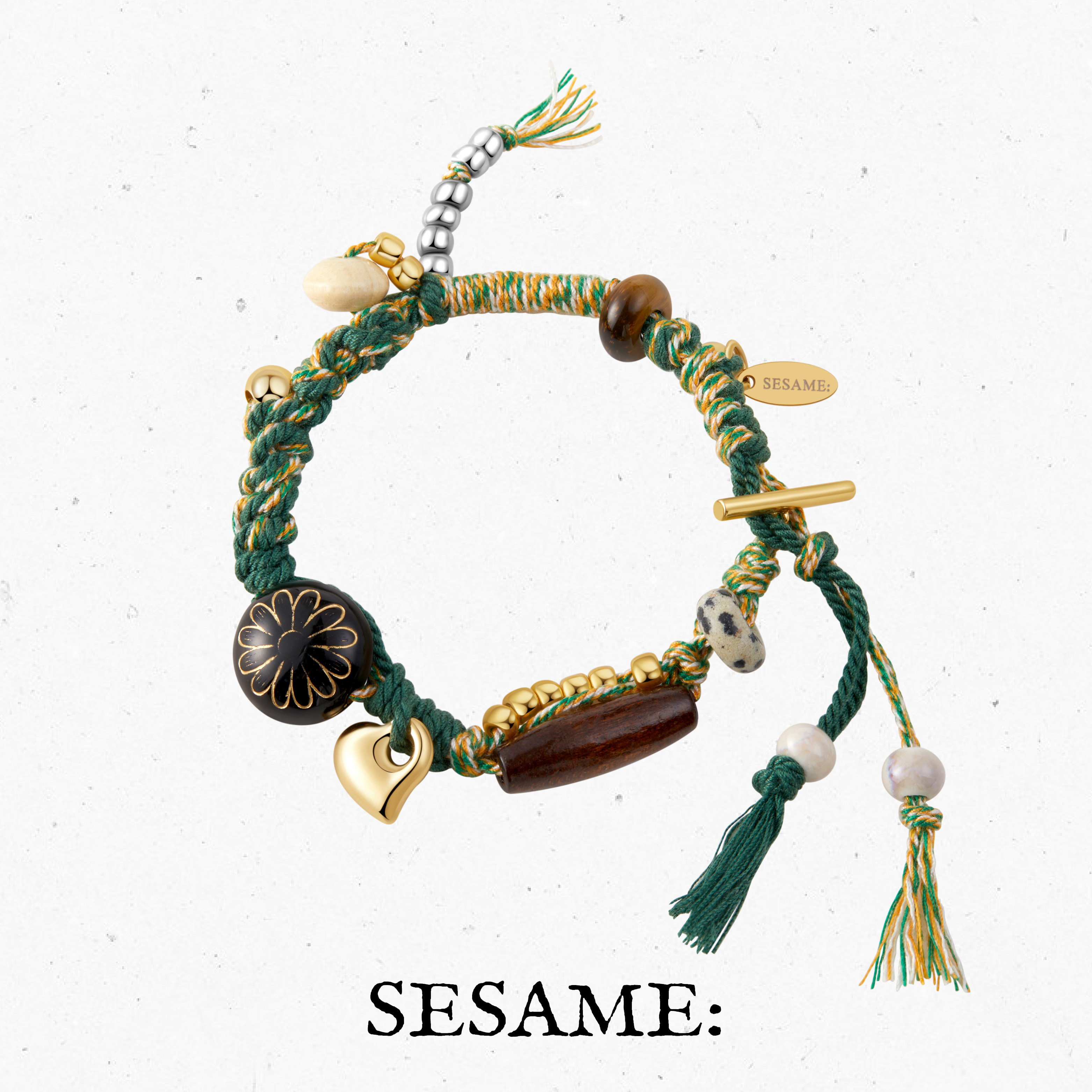 「新年礼物」春日花花绿色爱心手绳藏式编织民族风复古手工手链