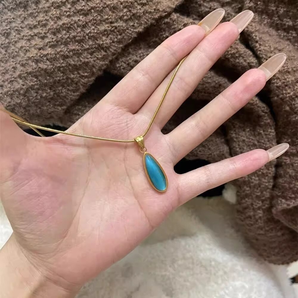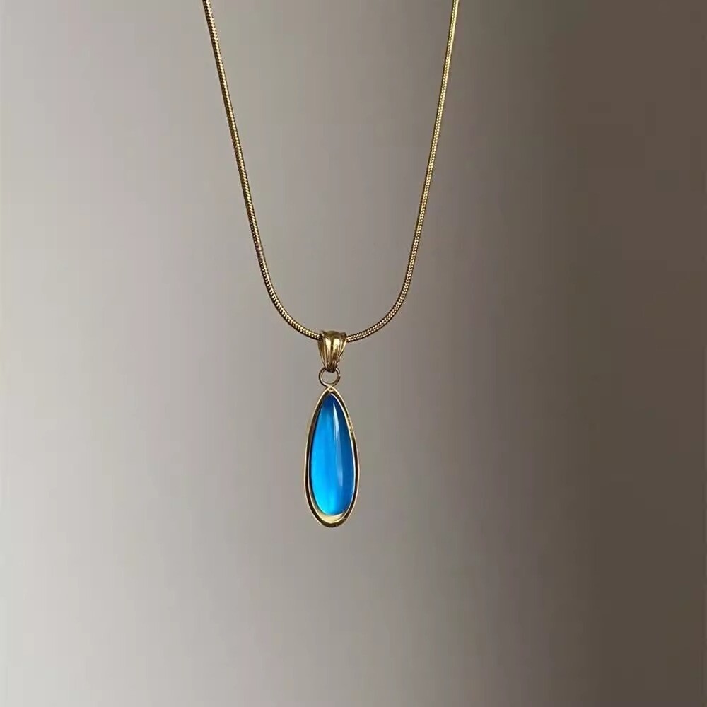 海洋之心~蓝色水滴吊坠项链女配饰轻奢高级感钛钢不掉色锁骨颈链