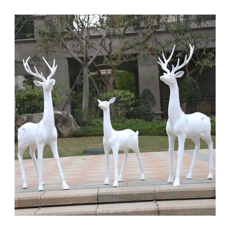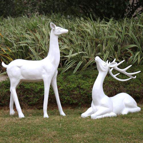 户外仿真玻璃钢白鹿雕塑落地庭院园林景观商场婚礼装饰白色鹿摆件