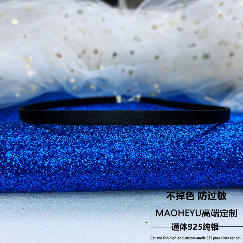 不掉色 S925纯银狂飙陈书婷大嫂高叶同款黑色皮绳项链choker项圈
