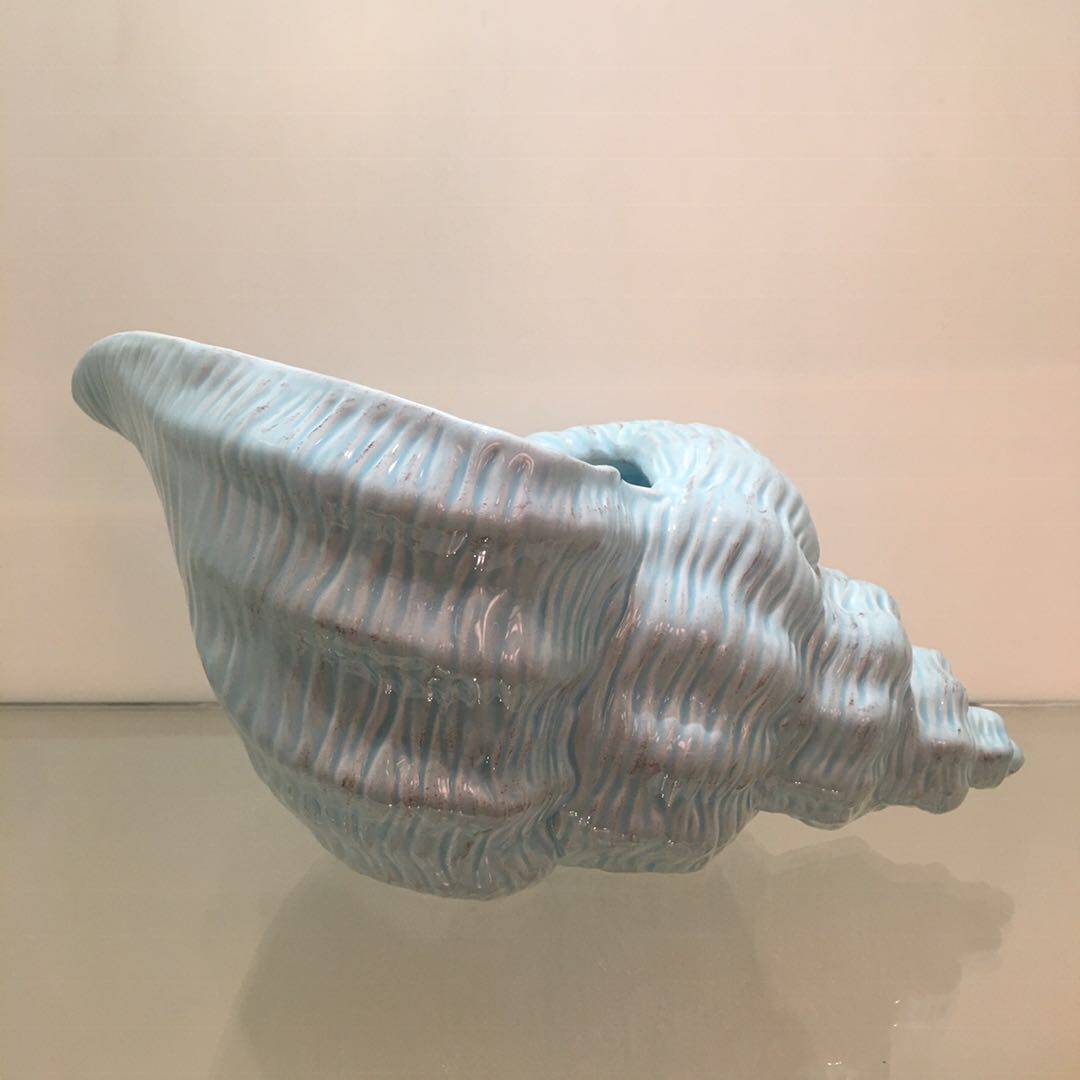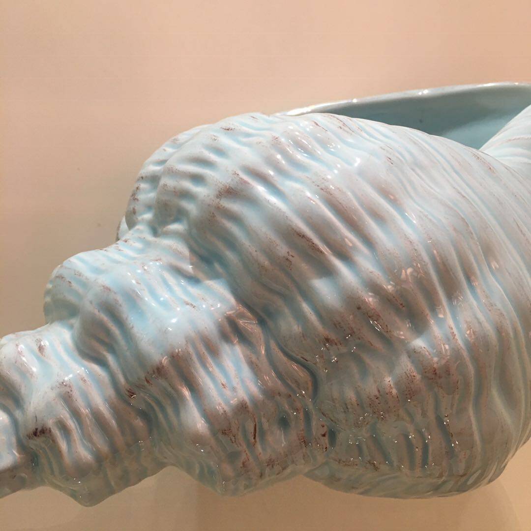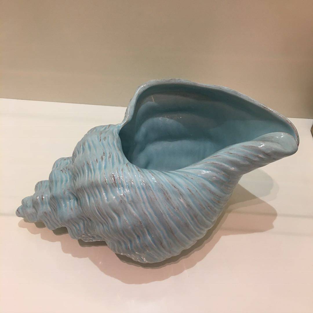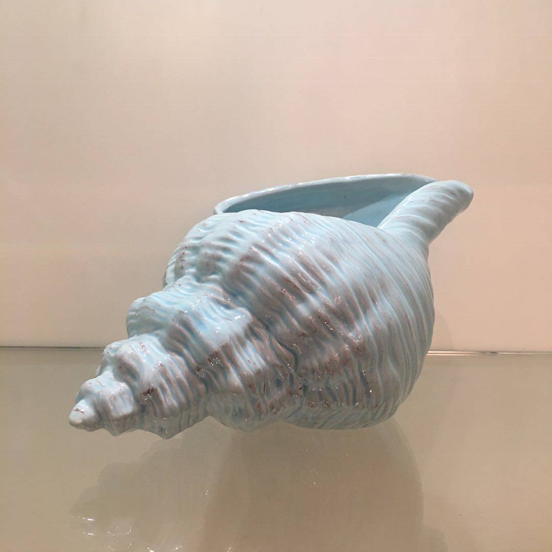 正版现货现代时尚创意地中海工艺品蓝色陶瓷海螺花瓶客厅酒柜摆件