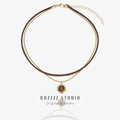不褪色 黑色珠锁骨链女短款双层皮绳项链颈带项圈小众设计choker