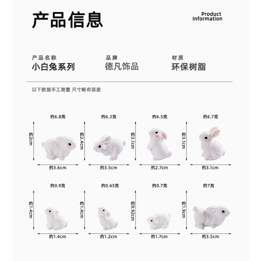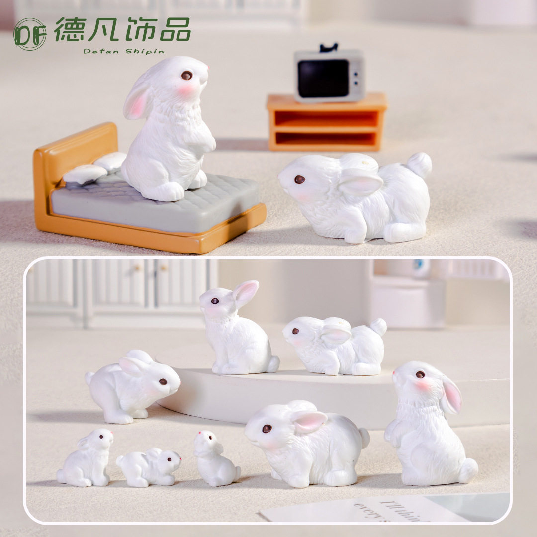 可爱动物写实兔子diy树脂工艺品配件微景观车载摆件装饰配饰