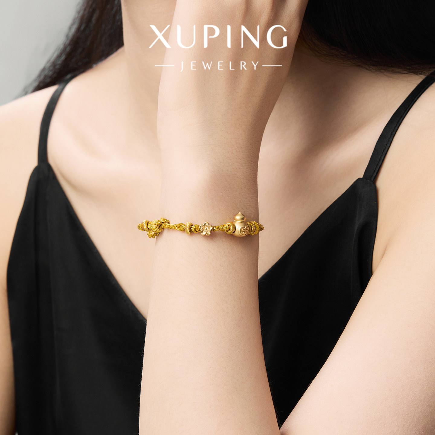 旭平金色葫芦抽拉编织黄色手绳手链复古新中式气质手饰