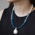 朗睦原创天然天河石手工新中式新款切面青蓝色串珠女波西米亚项链