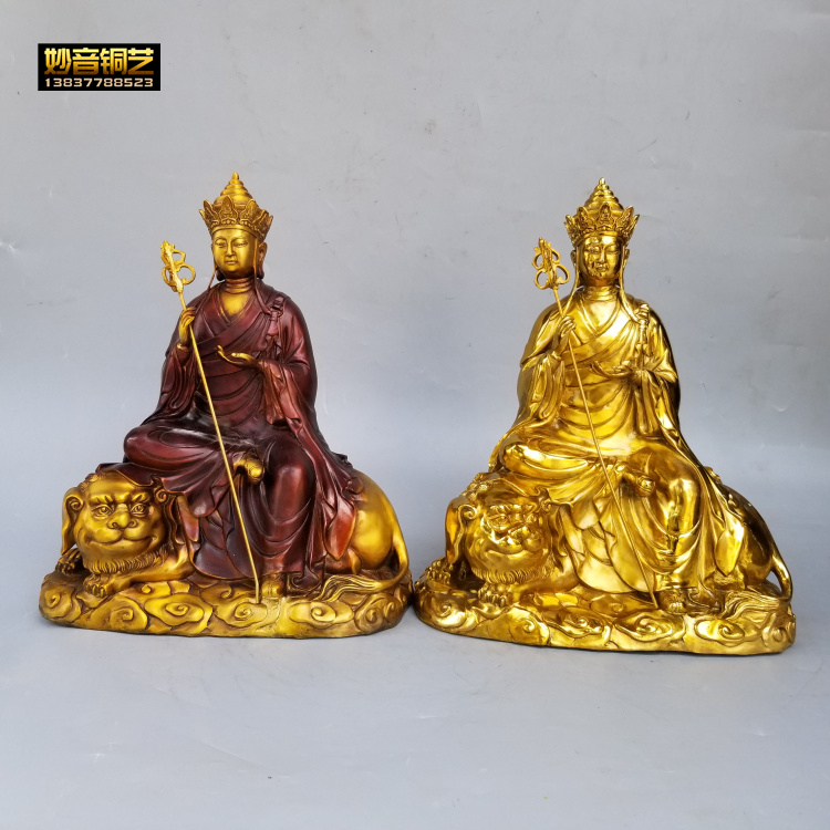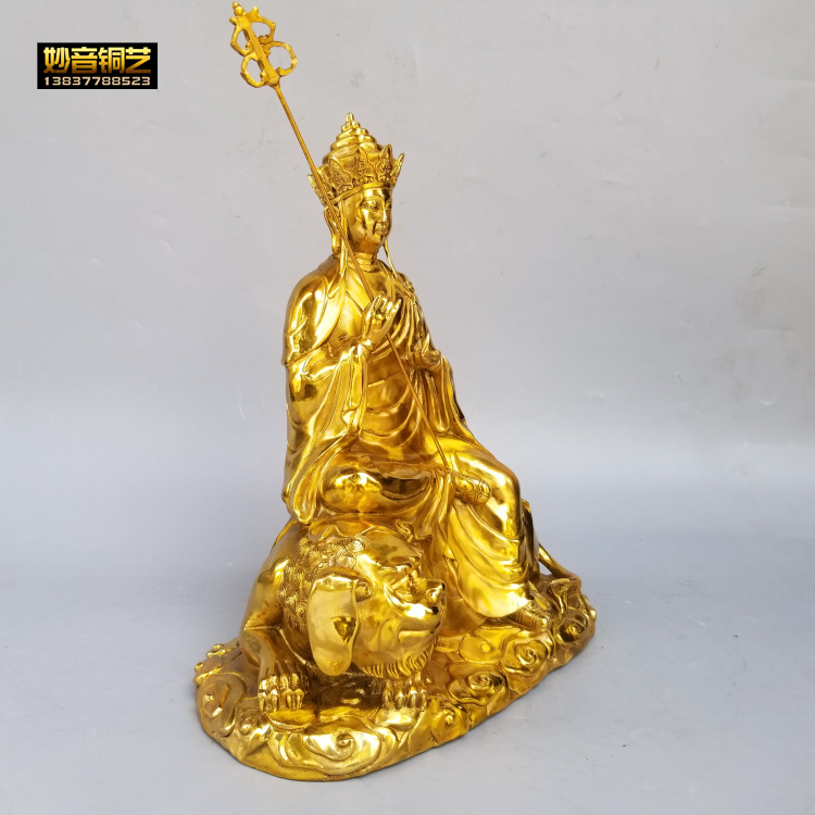娑婆三圣地藏王骑坐骑铜谛听铜像铜地藏菩萨铜像家居摆件