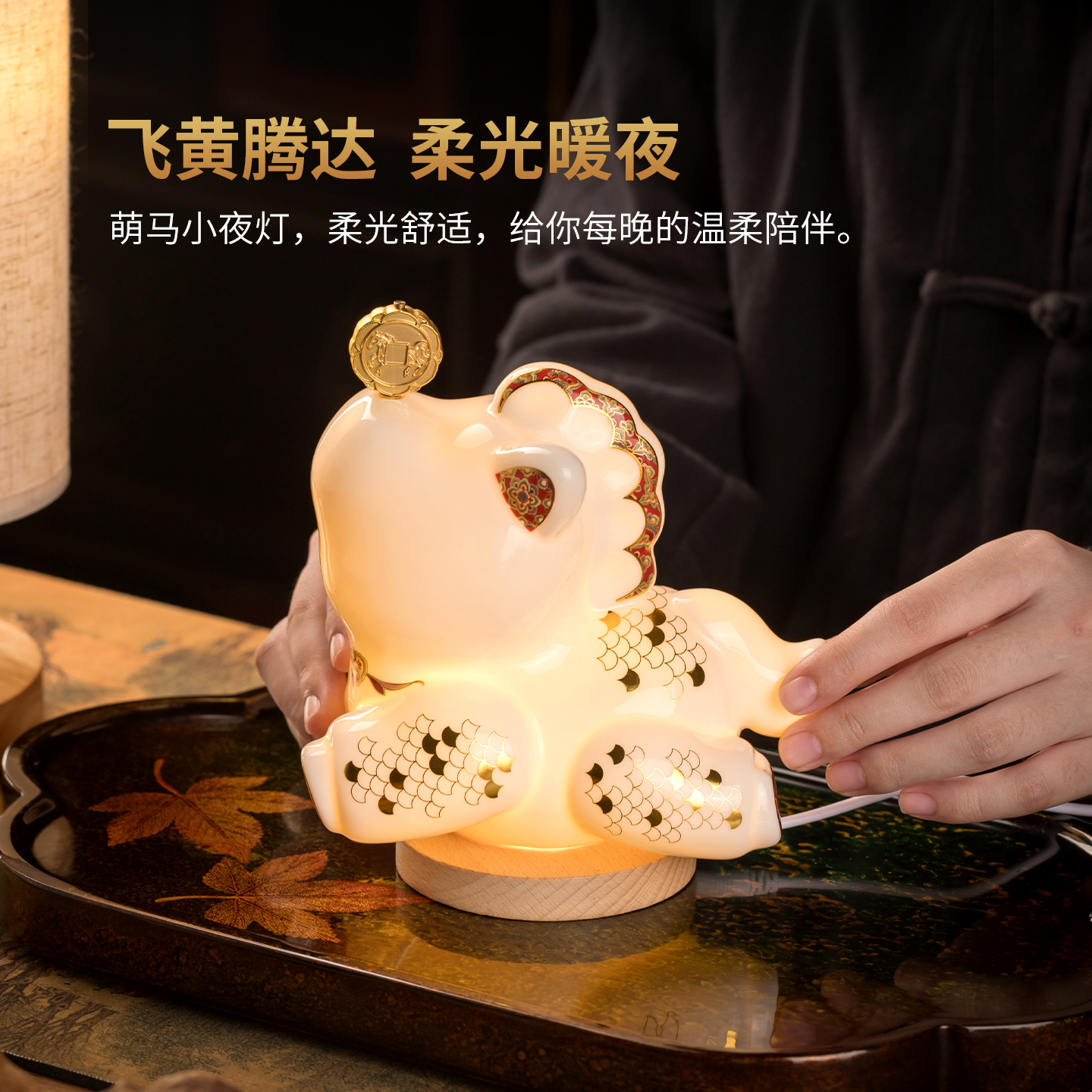 东方泥土陶瓷飞黄腾达马摆件小夜灯春节马年招财客厅装饰品送礼