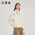艾莱依羽绒服女冬新款假两件粗花呢保暖翻领简约休闲鸭绒百搭外套