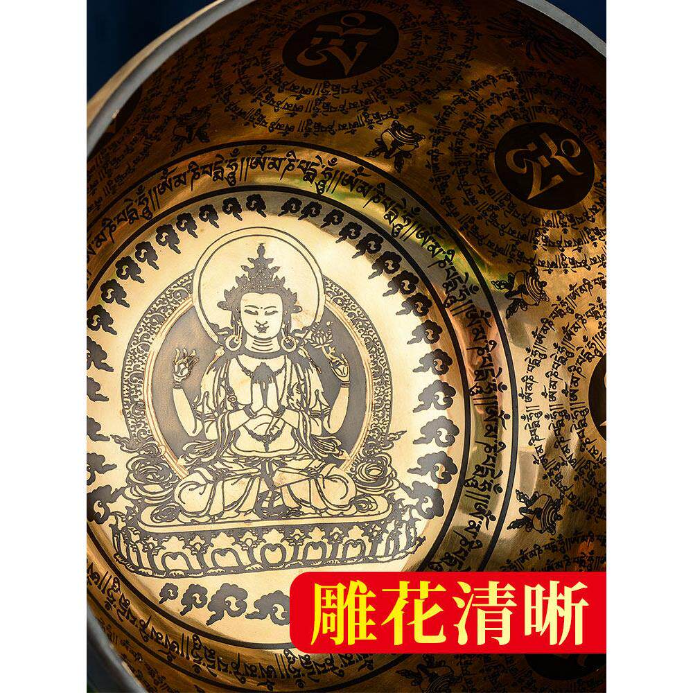 尼泊尔手工唱碗铜碗冥想碗声音碗瑜伽用品绿色度母黄色财神雕刻雕