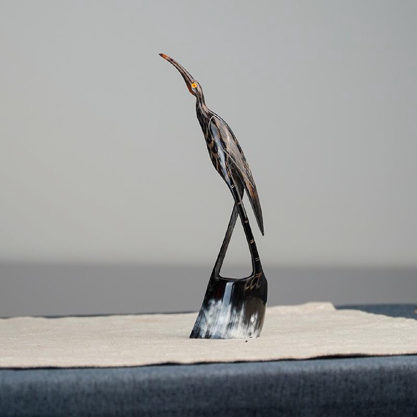 邱师傅手工雕刻真牛角仙鹤摆件新中式风格玄关艺术摆设送礼祝福工