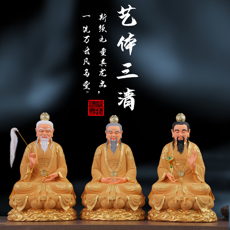 供奉家用龙椅三清佛像沙金太上老君居家元始道德灵宝天尊三清神像