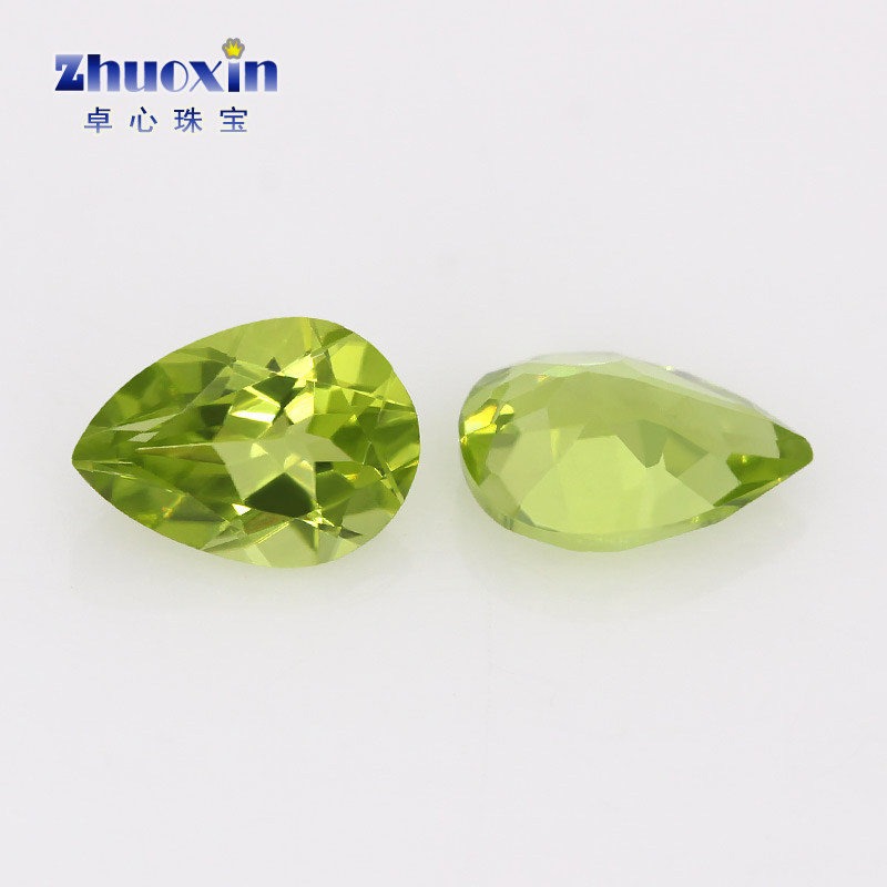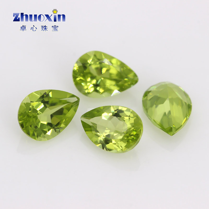 俄罗斯天然橄榄石梨形裸石 水滴形形尖底刻面透绿色彩色宝石diy