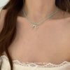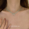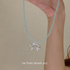 轻奢小众高级感蝴蝶结吊坠蓝色串珠项链女优雅高级百搭颈链锁骨链