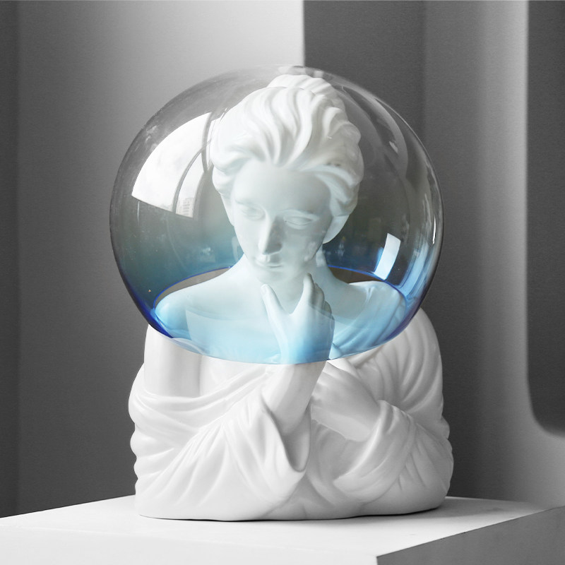蓝色泡泡女孩客厅桌面人物摆件白色树脂艺术雕塑高级感软装饰品大