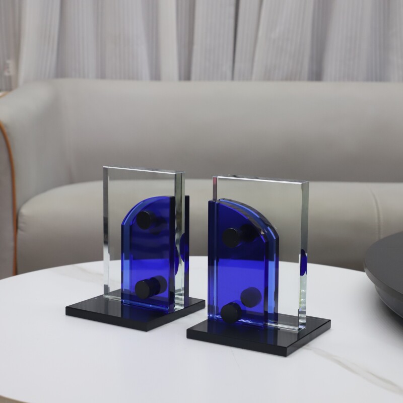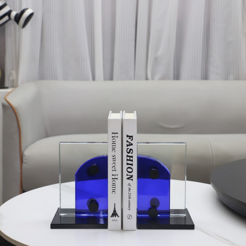现代简约蓝色拱形水晶书档摆件客厅书房玄关电视柜样板房家居饰品