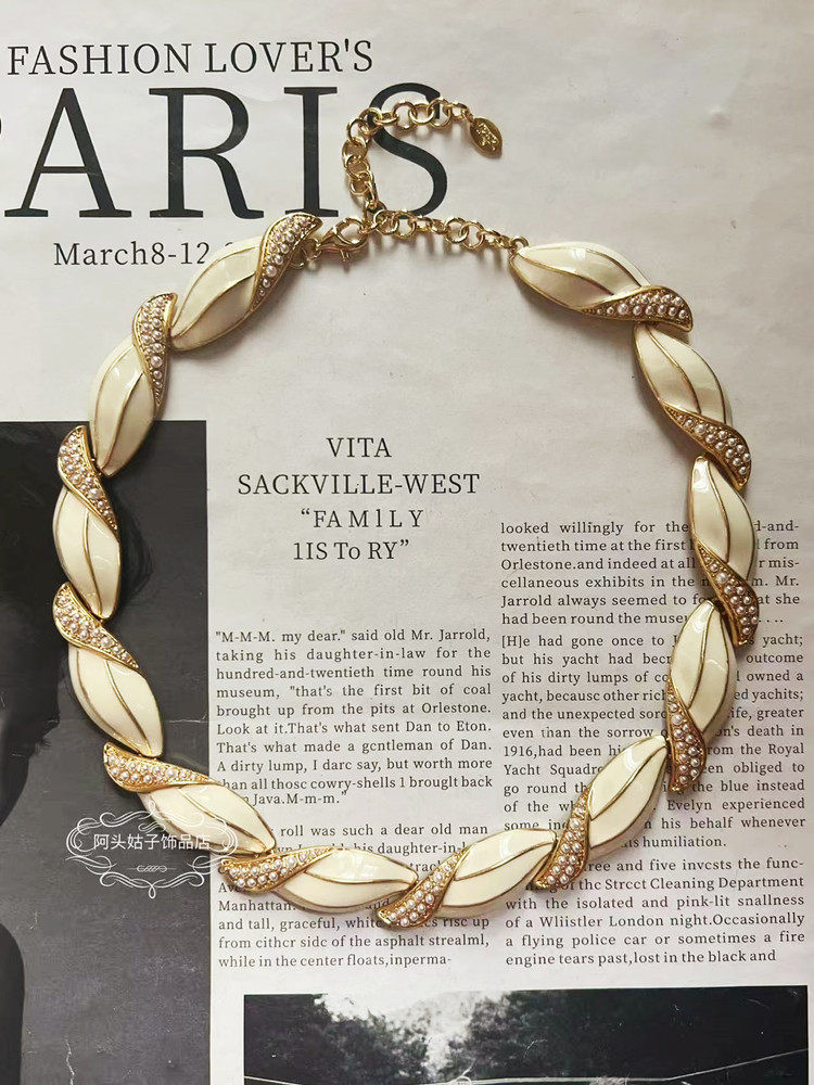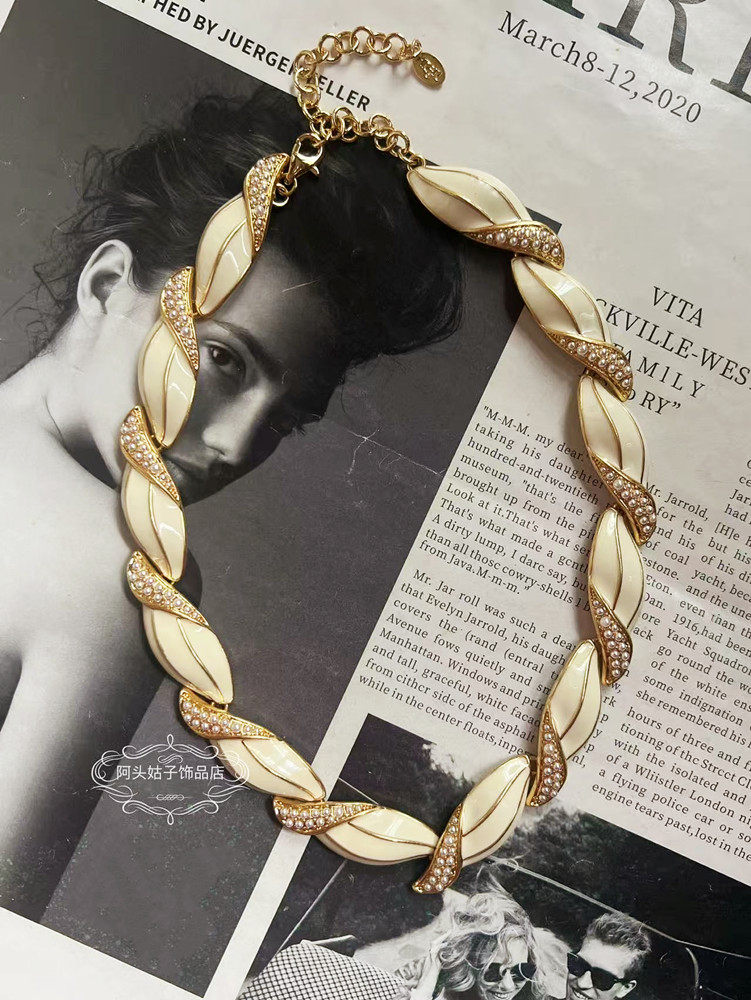 欧美宫廷风中古vintage复古气质白色滴釉珍珠短款项链耳环套装女