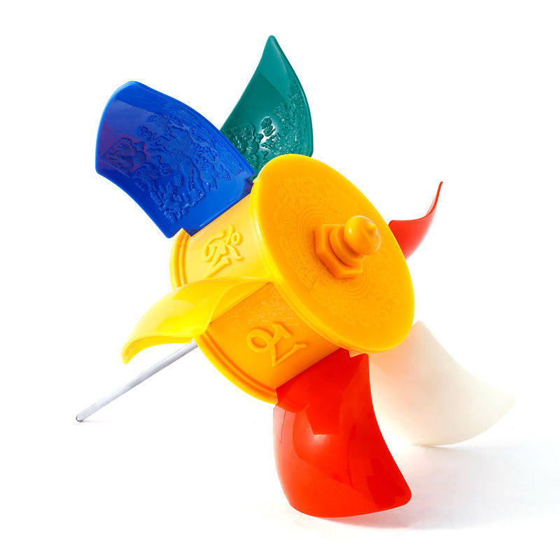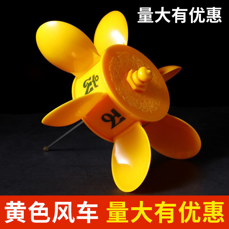 民族用品彩色风车圆转轮平安吉祥可插房顶上车载风动黄色转桶转轮