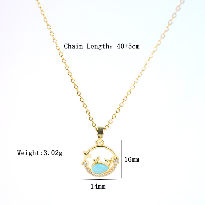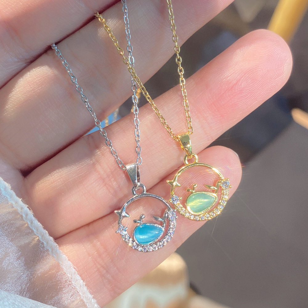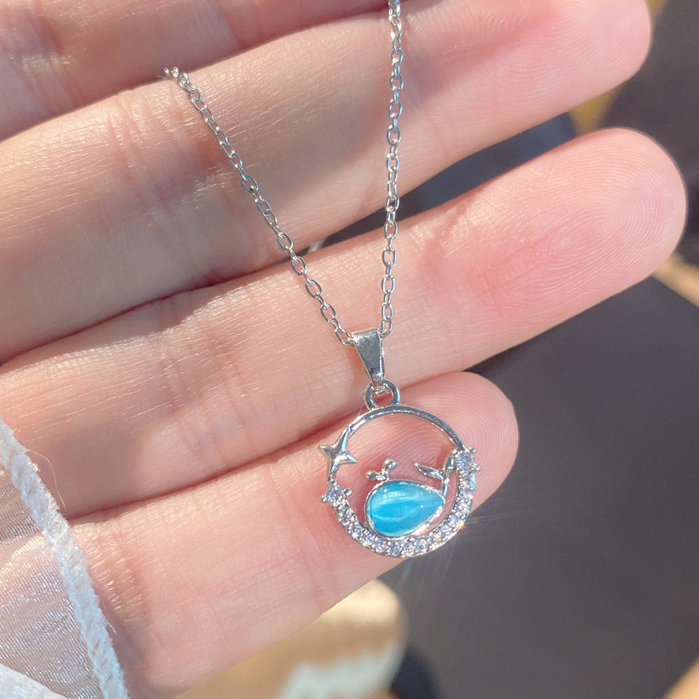 海洋系列蓝色小鲸鱼满钻钛钢项链女小众设计高级感网红锁骨链饰品