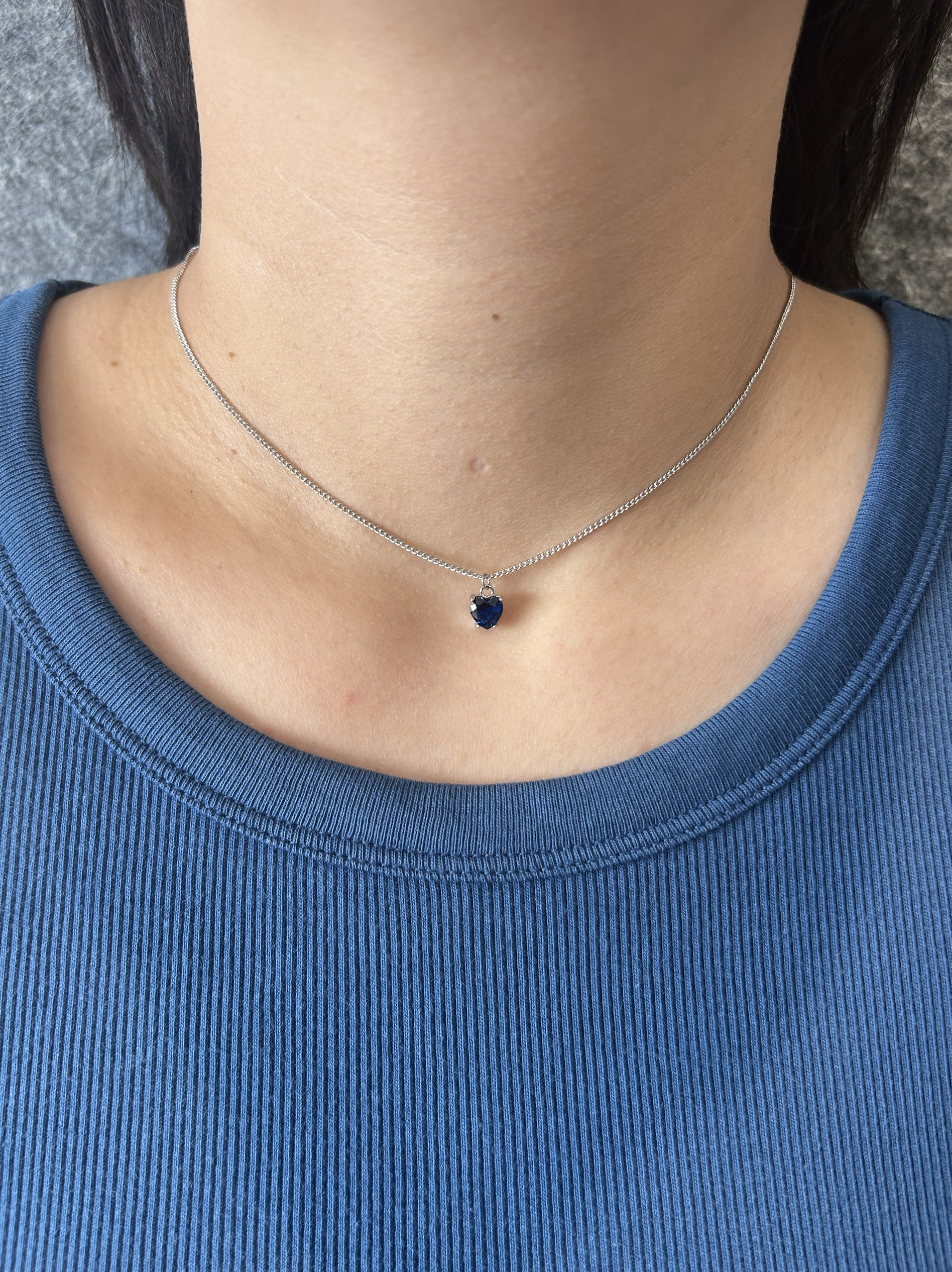 海洋之心项链女夏新款锁骨链bm风同款平替精致蓝色小锆石吊坠饰品