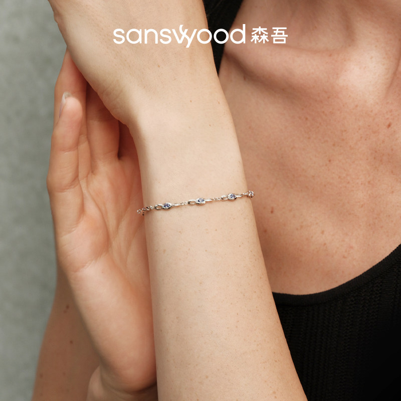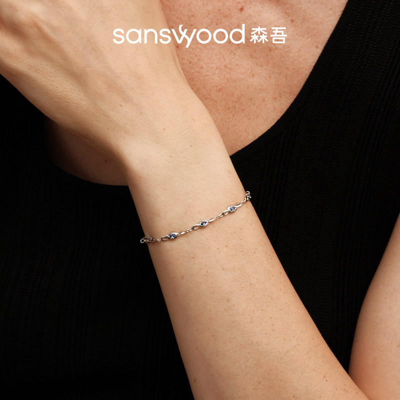 sanswood森吾《flow》蓝钻泡泡流动感手链女生银色精致轻奢礼物