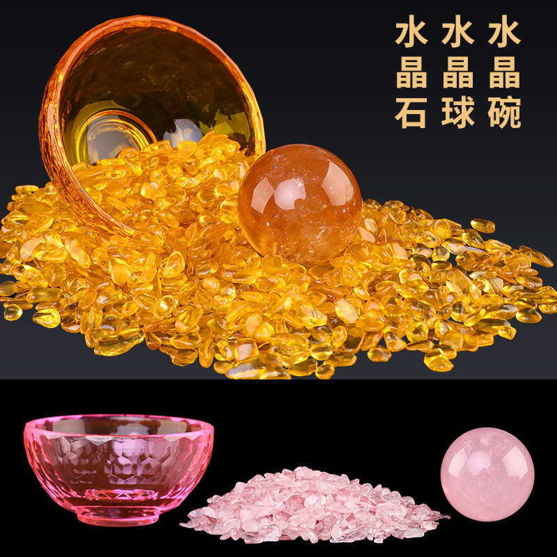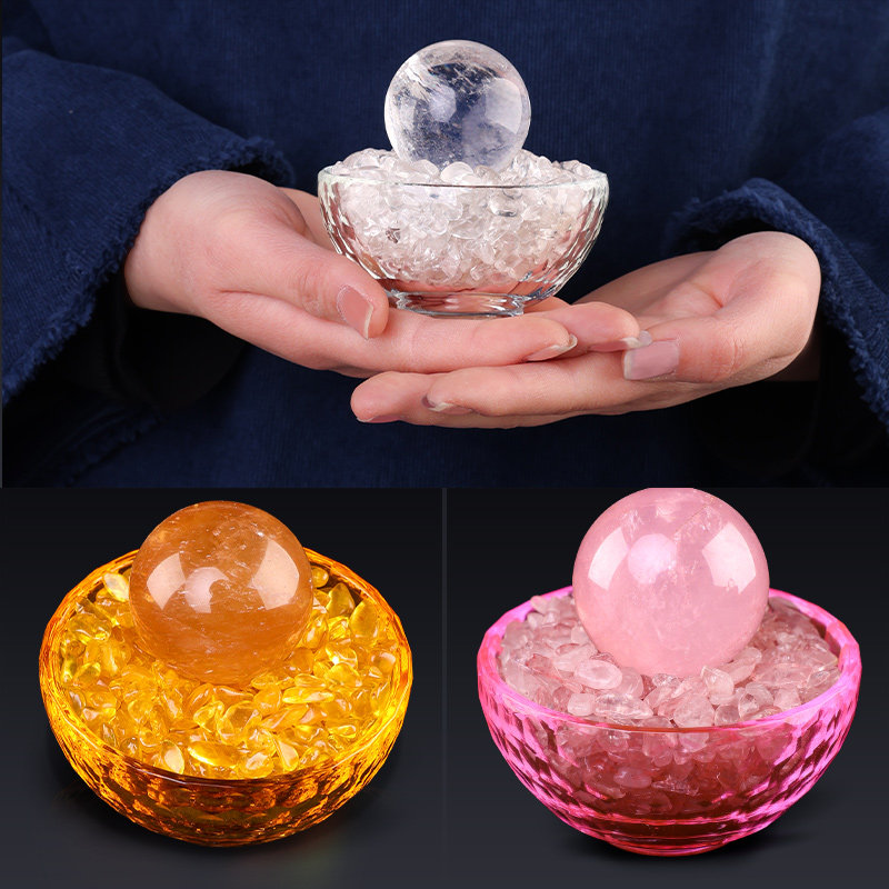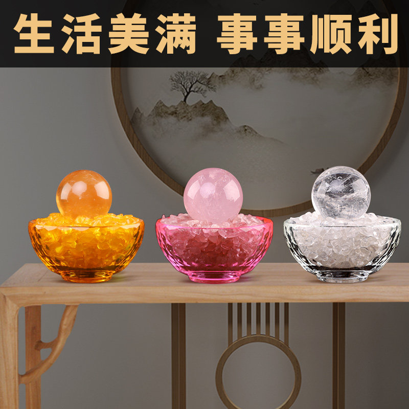 聚宝盆摆件八吉祥碗琉璃白色粉黄色水晶球碎石客厅玄关商铺工艺品