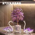 天然黄紫粉水晶发财树摆件碎石紫晶簇原石树家居装饰工艺品摆件