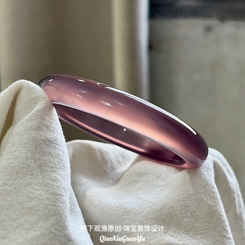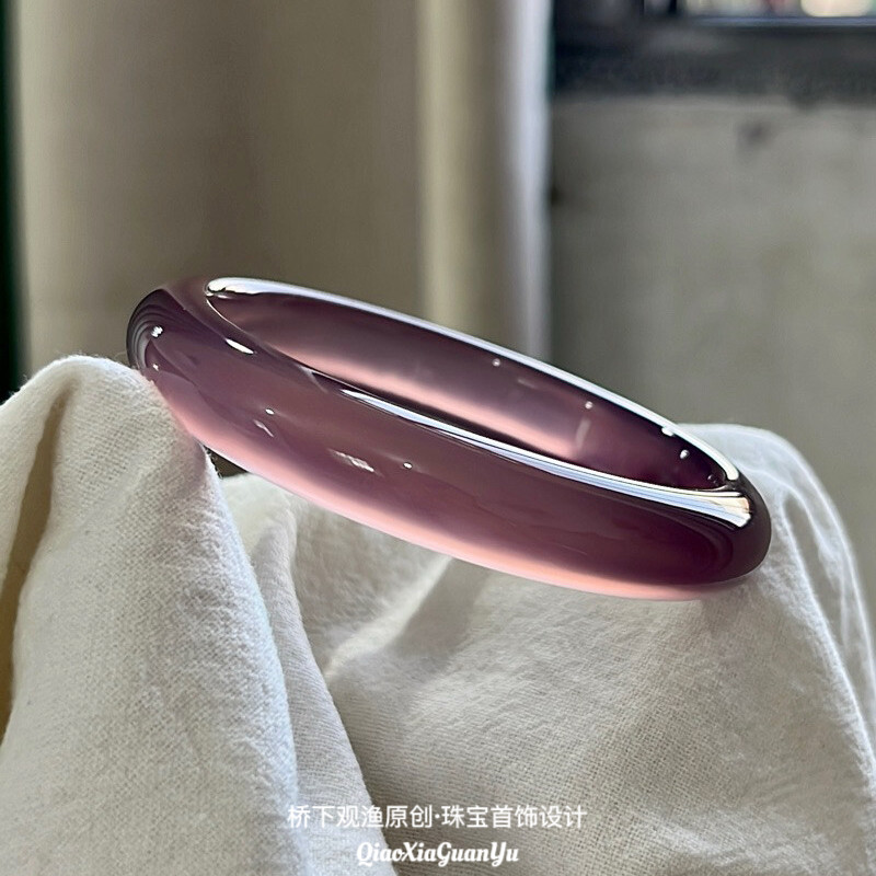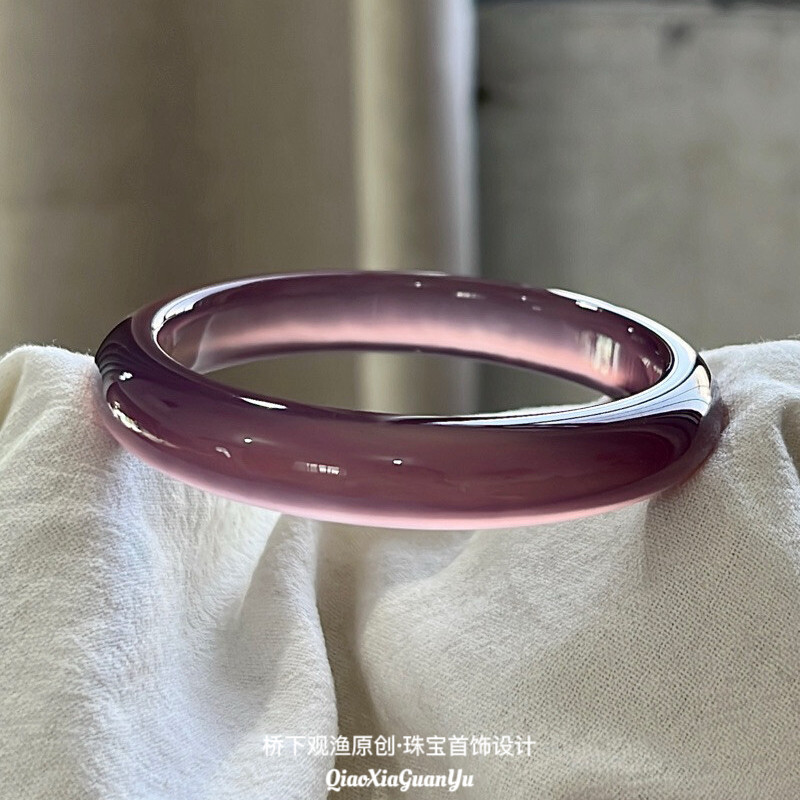 桥下观渔天然玛瑙手镯女紫罗兰冰种玉镯子帝王紫色高冰透玉髓正品
