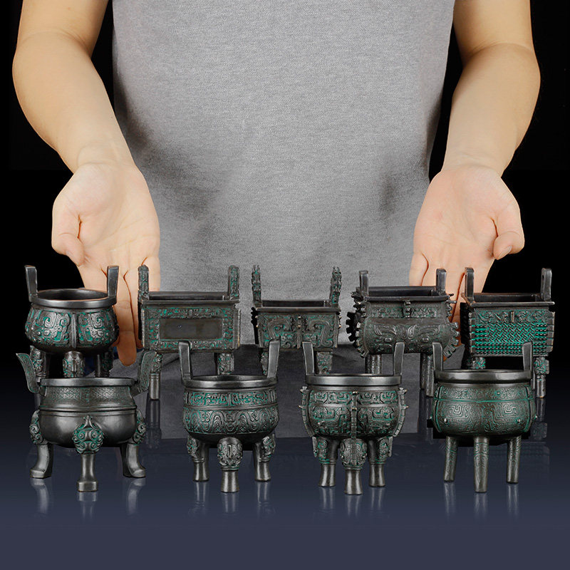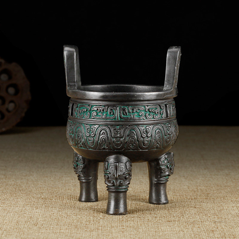 纯黄铜鼎小号铜鼎摆件客厅家居装饰品九鼎返古青铜工艺礼品鼎摆件