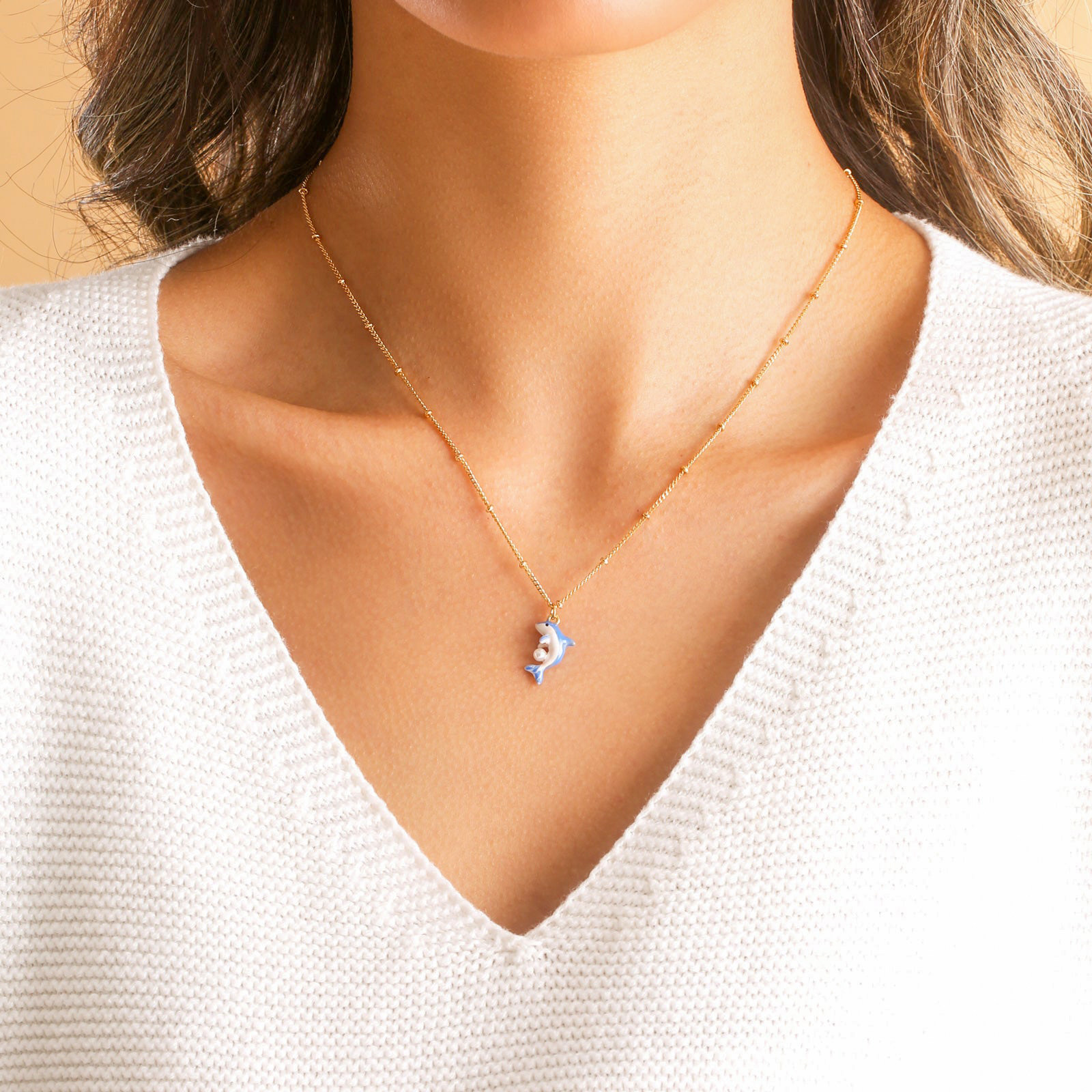 SELENICHAST海洋系列可爱海豚彩蛋项链小众高级感女友生日礼物