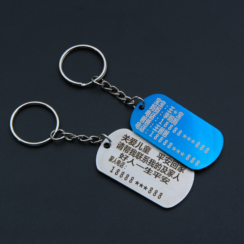 老人儿童书包衣服防丢牌电话手机号码定制刻字汽车钥匙扣挂件项链