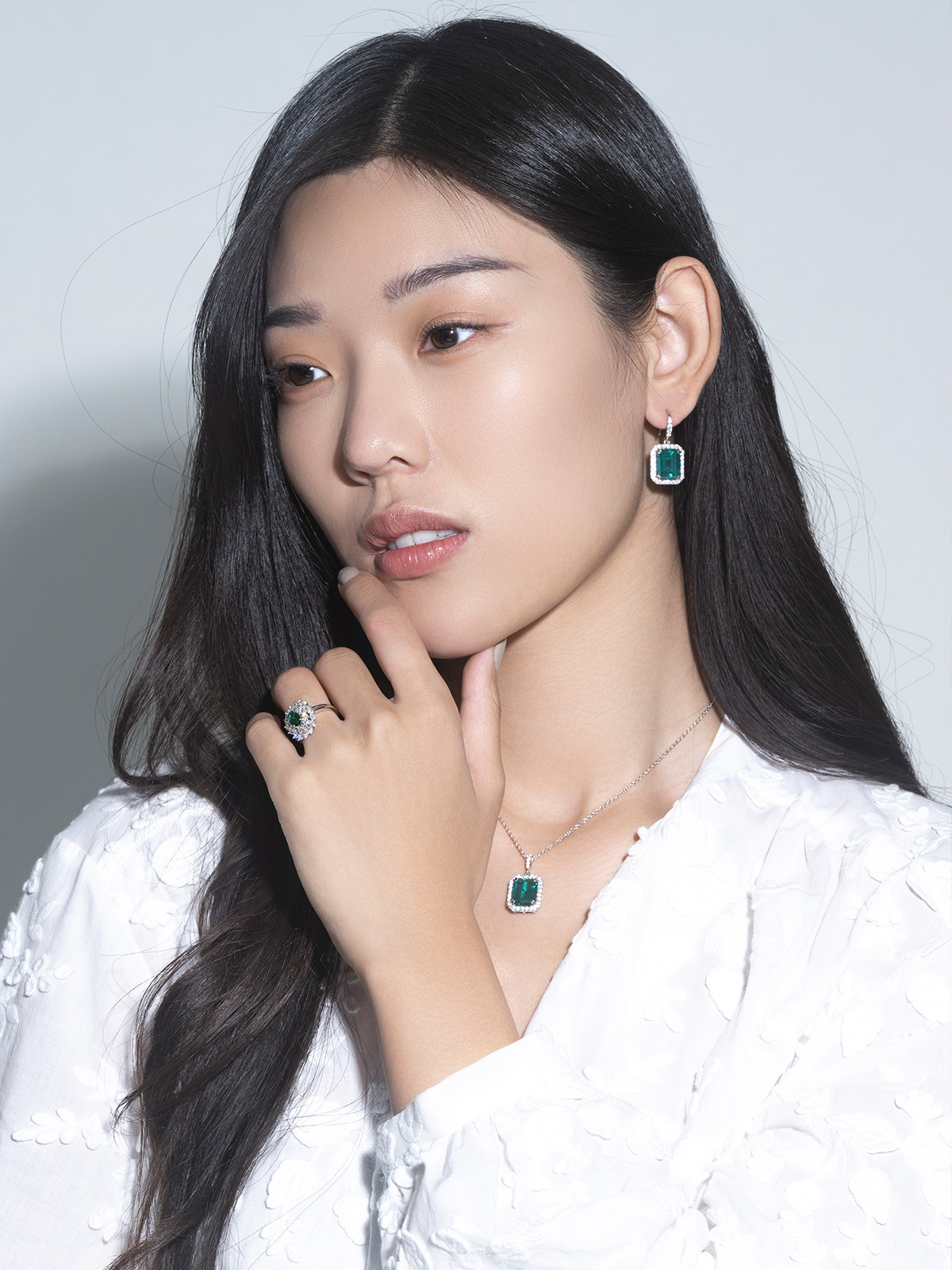 JCJ时装珠宝HighJewelPlay系列925银绿色琉璃宝石戒指女