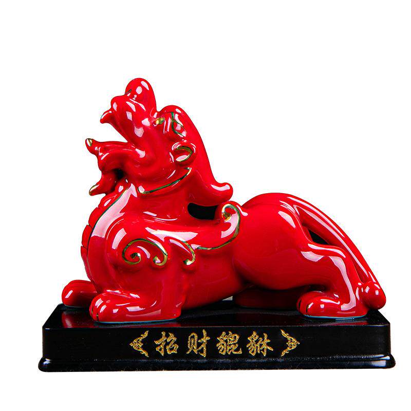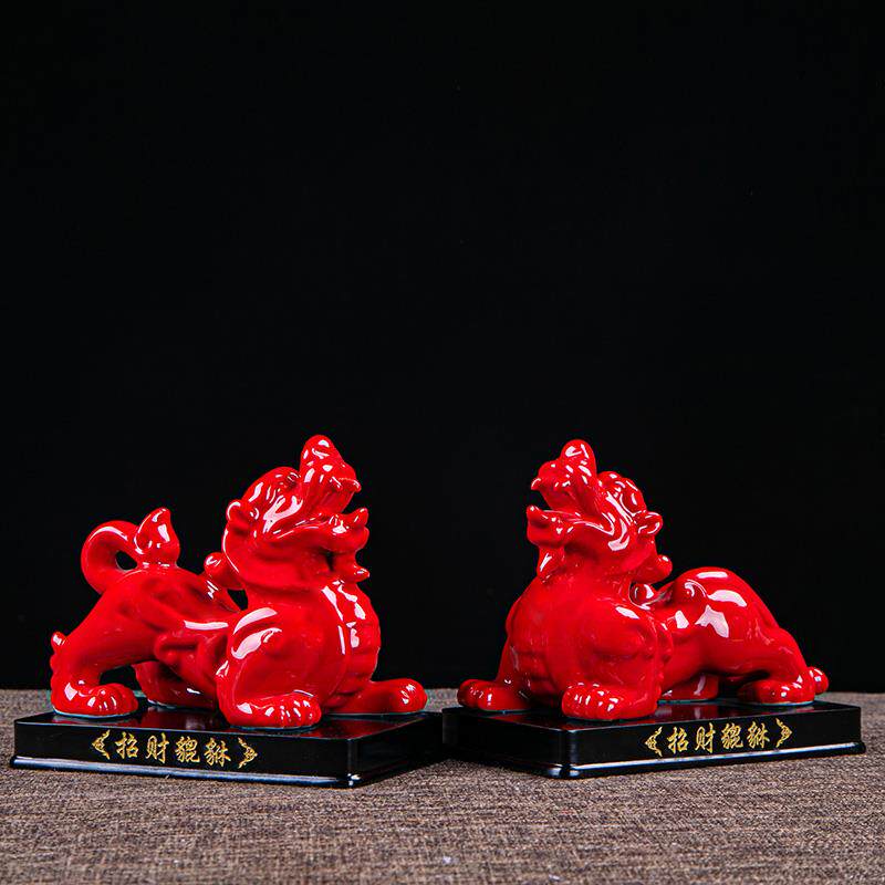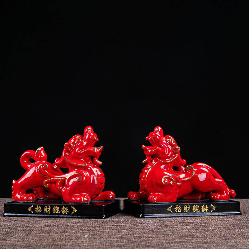 默临 陶瓷黄色貔貅摆件一对招财镇宅聚财客厅店铺家居办公室皮丘