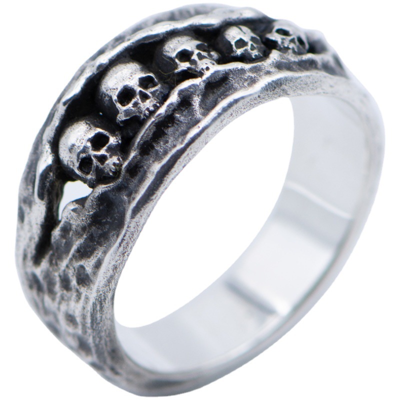 DAMAI 复古美式五头鲍骷髅男戒潮流个性做旧原创手工制作戒指指环